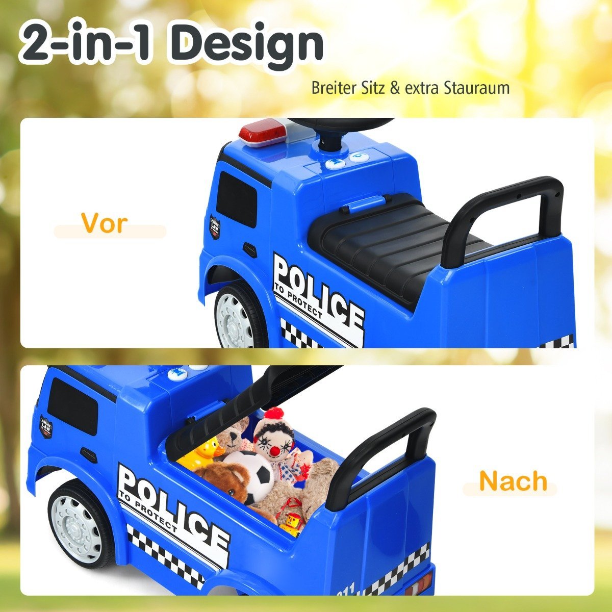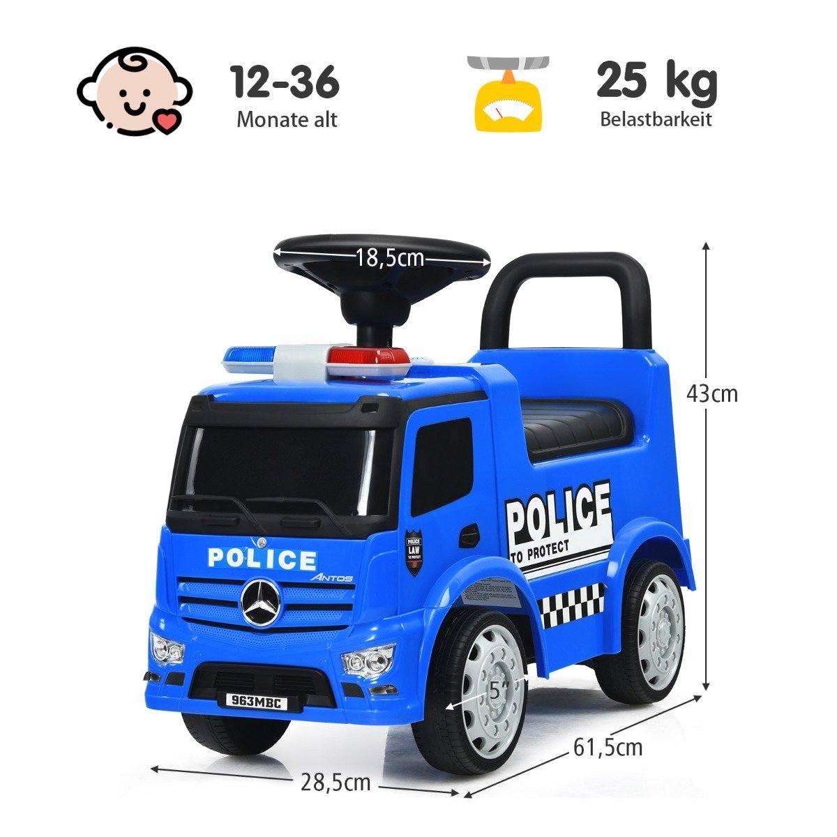 Tai puiki dovana jūsų vaikui nuo 12 iki 36 mėnesių amžiaus, suteiksianti daug džiaugsmo ir skatinanti fizinį aktyvumą. Su šiuo automobilio tipo žaislu vaikas mokysis žengti pirmuosius žingsnius ir mėgausis vairavimo malonumu.