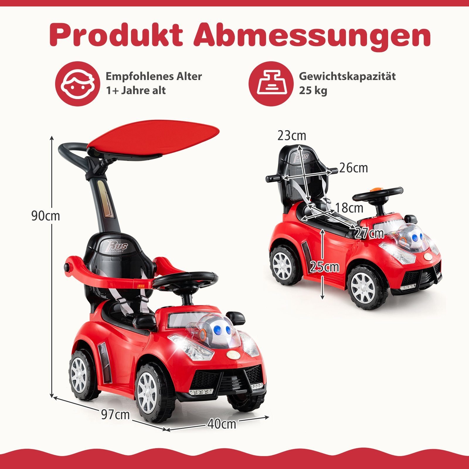 Vaikiškas automobilis su stūmimo rankena ir daiktų dėže (Raudona)
