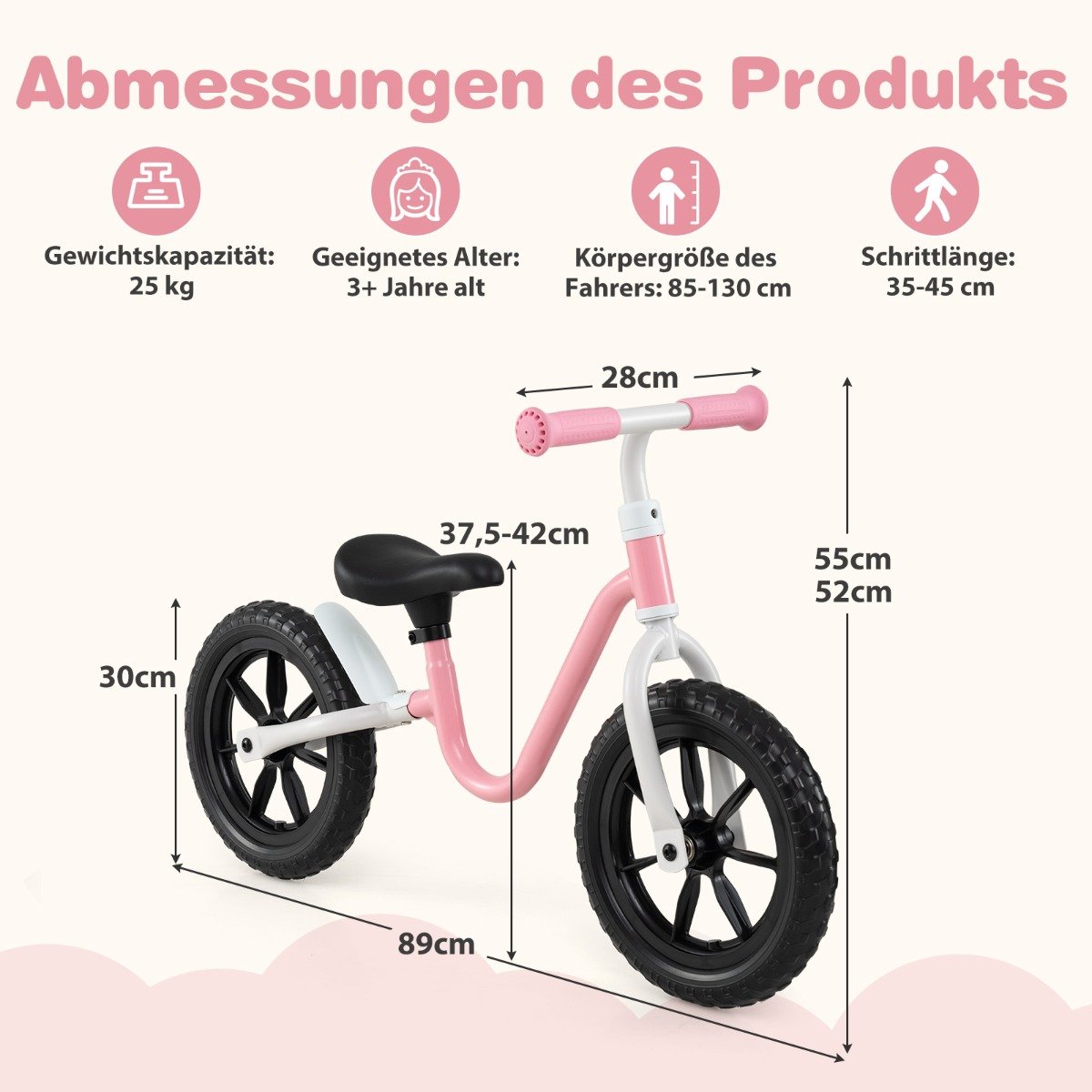 Vaikiškas balansinis dviratukas 12 colių ratais (Rožinė)