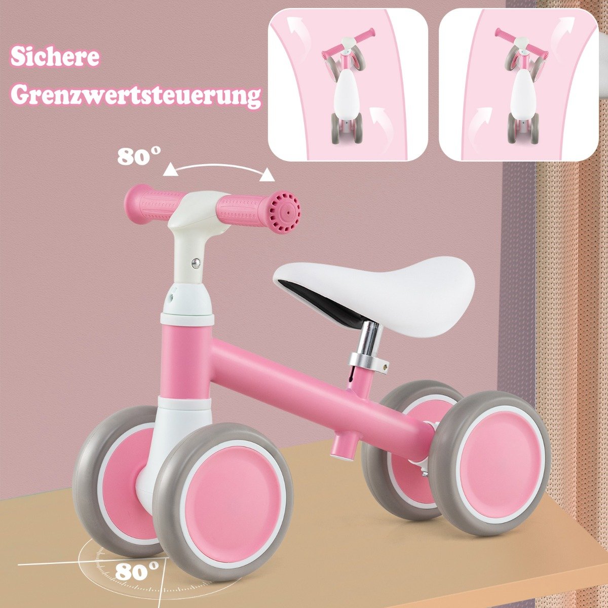 Vaikiškas balansinis dviratukas su reguliuojamu vairalazde (Rožinė)