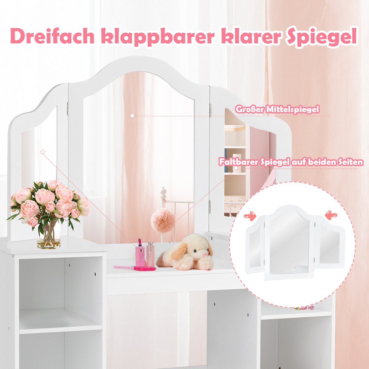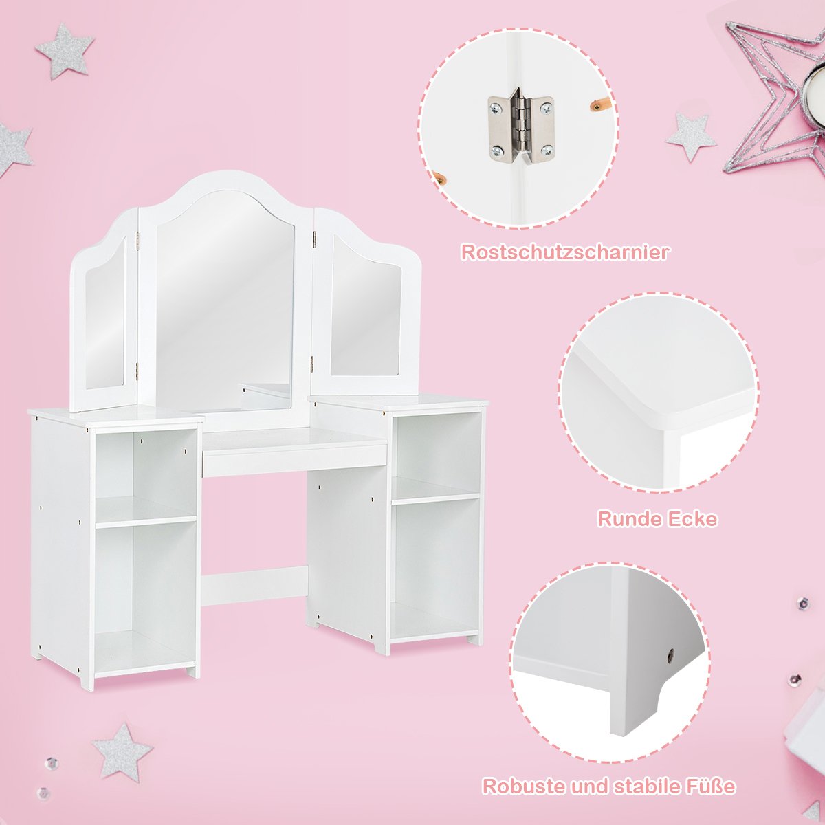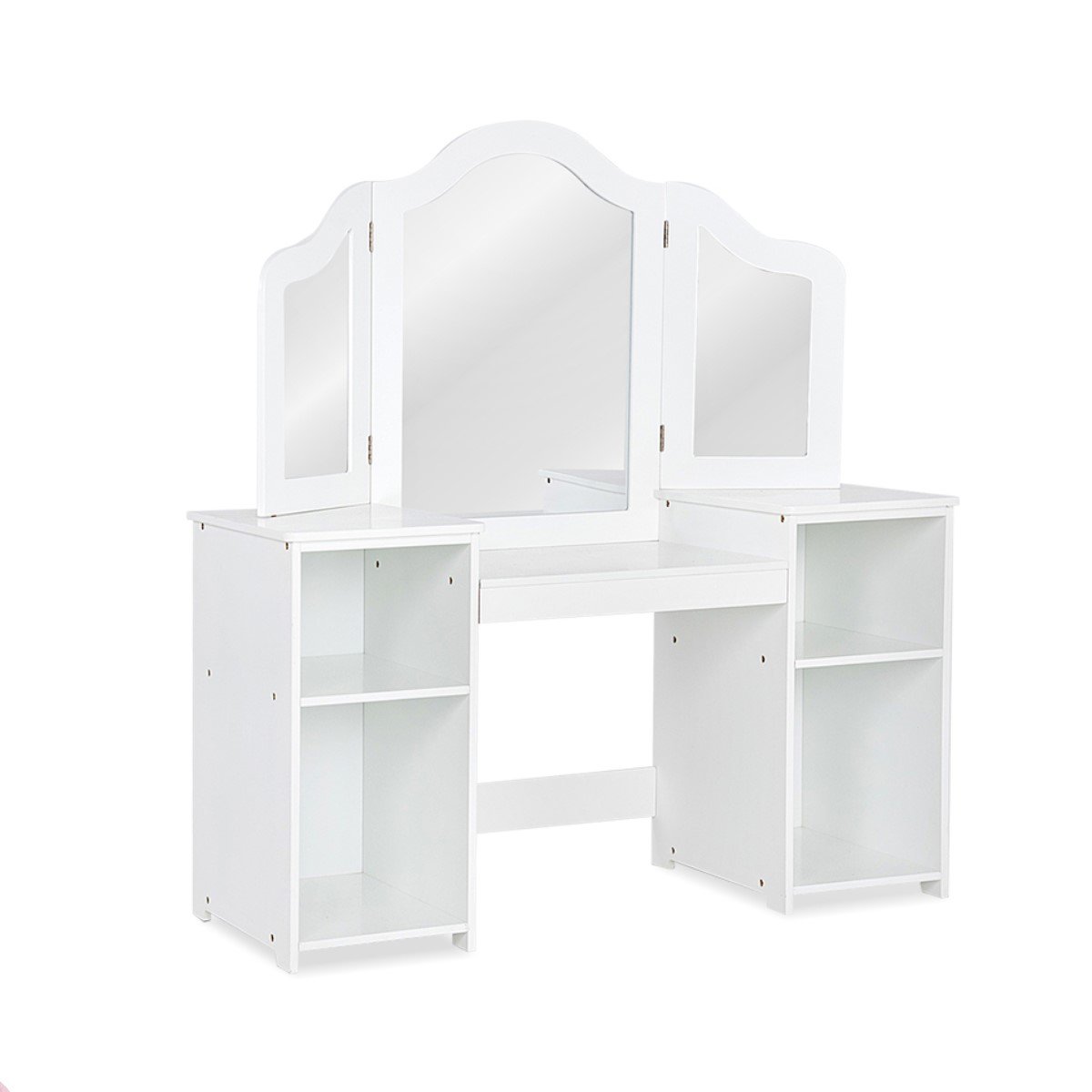 Vaikiškas dvigubas rašomasis stalas su veidrodžiu (Balta)