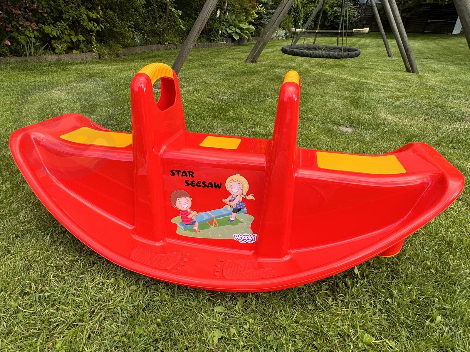 Ergonomiška forma, patogios sėdynės ir saugios rankenos užtikrina komfortišką ir stabilų žaidimą. Balansyras pagamintas iš patvaraus, oro sąlygoms atsparaus plastiko, užtikrinančio ilgaamžiškumą net ir intensyviai naudojant. Tai funkcionali alternatyva klasikinėms sūpynėms, leidžianti vaikui žaisti vienam arba su draugu, lavinant bendradarbiavimo įgūdžius ir pusiausvyrą. Dėl lengvos konstrukcijos jį paprasta perkelti į bet kurią norimą vietą.