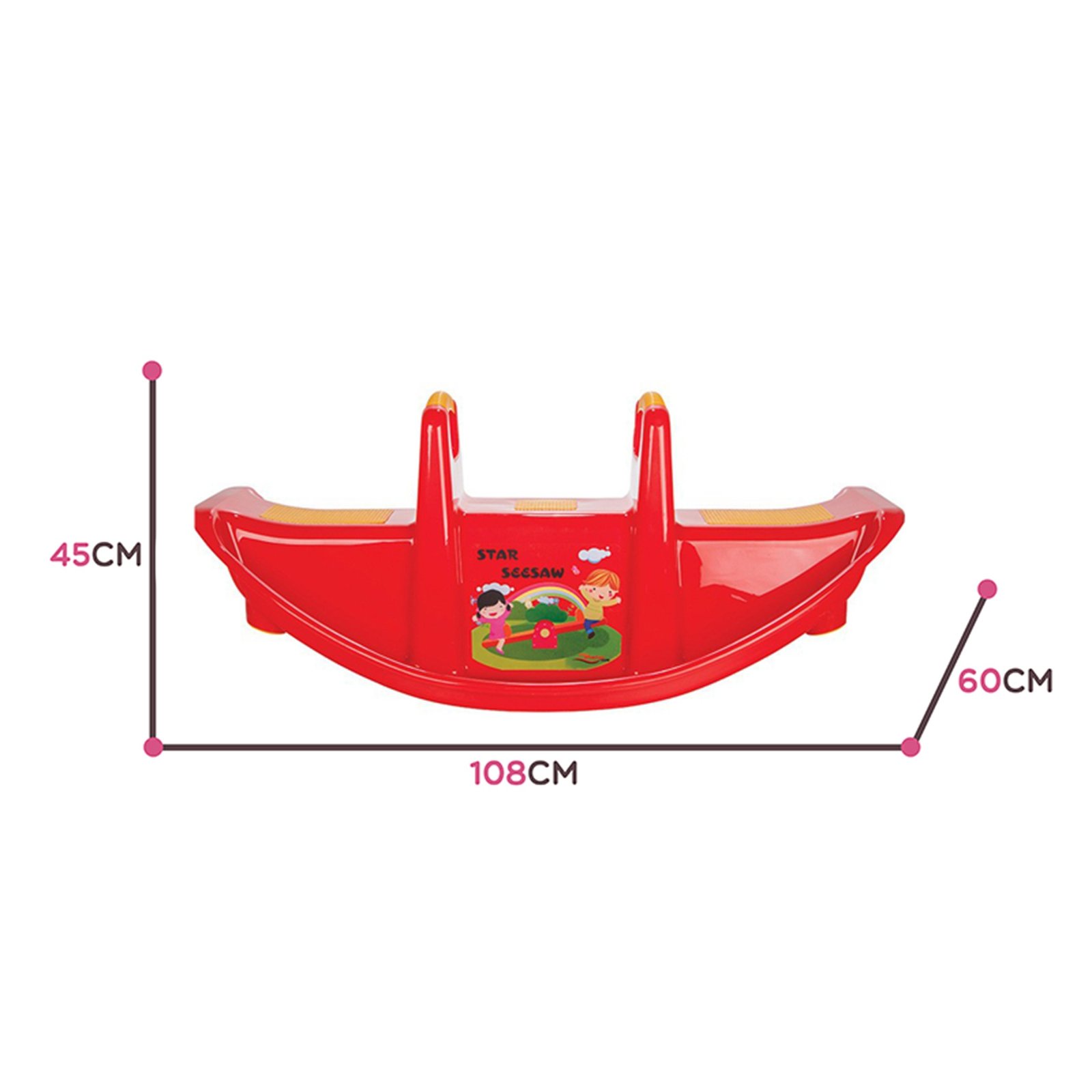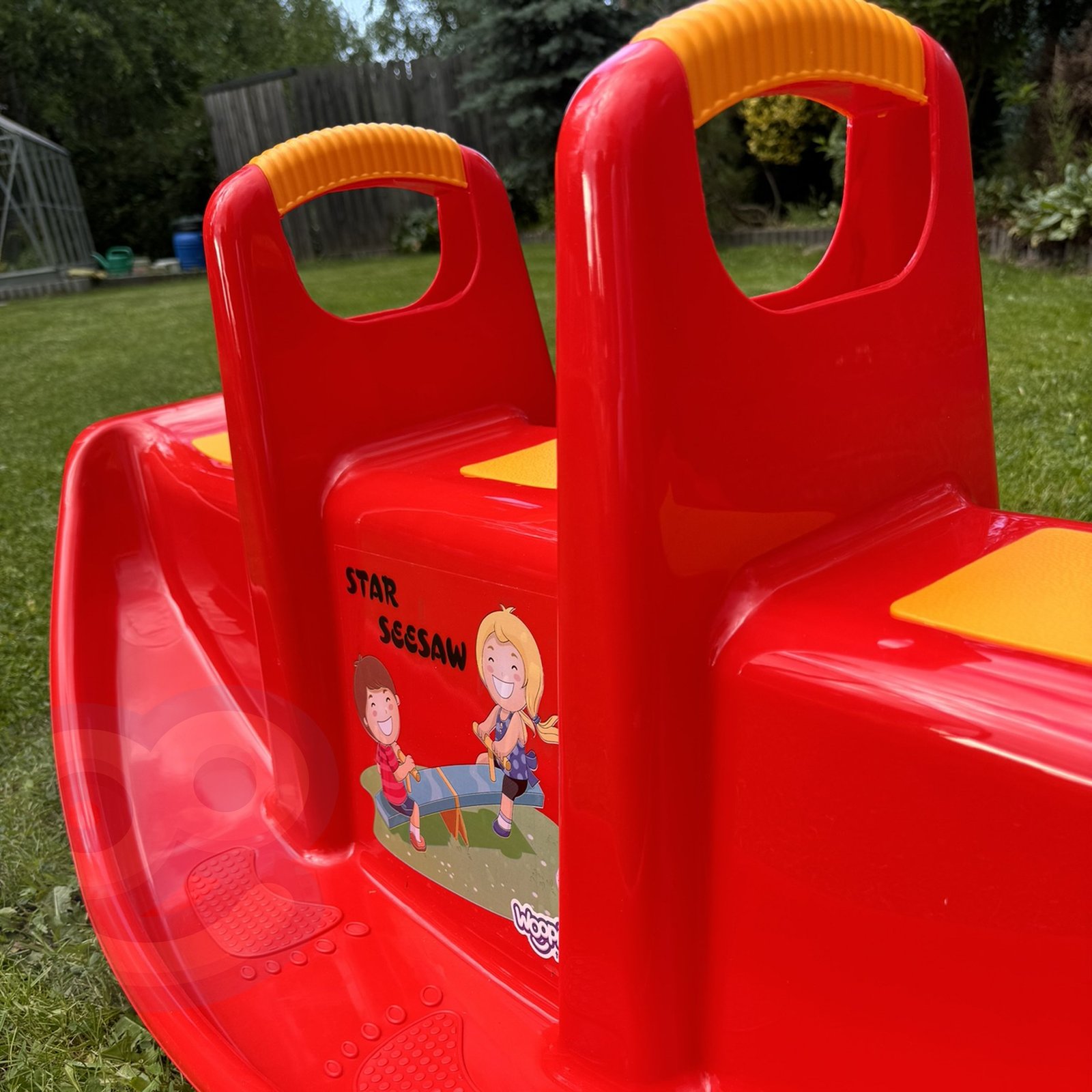 Ryškios raudonos ir geltonos spalvos deriniai bei žaismingas priekinis paveikslėlis patraukia vaikų dėmesį ir skatina juos aktyviai judėti. Supimasis ant balansyro – tai ne tik smagus užsiėmimas, bet ir puiki priemonė lavinti stambiąją motoriką, pusiausvyrą bei judesių koordinaciją.