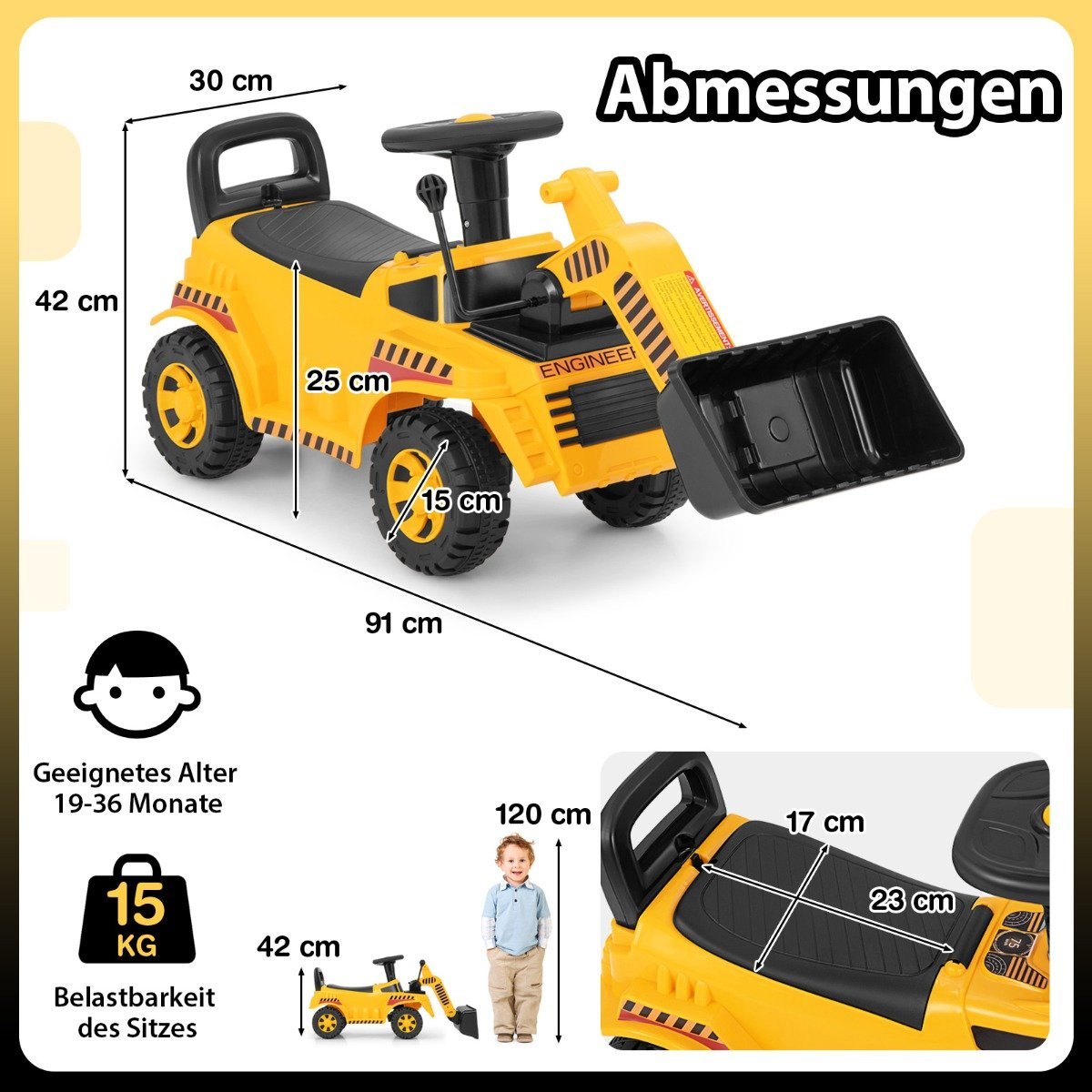 Mažieji statybininkai pamils šį pedalais valdomą ekskavatorių – puikų žaidimų draugą statybvietei. Su šiuo žaislu vaikai ne tik smagiai leis laiką, bet ir lavins fizinius įgūdžius.