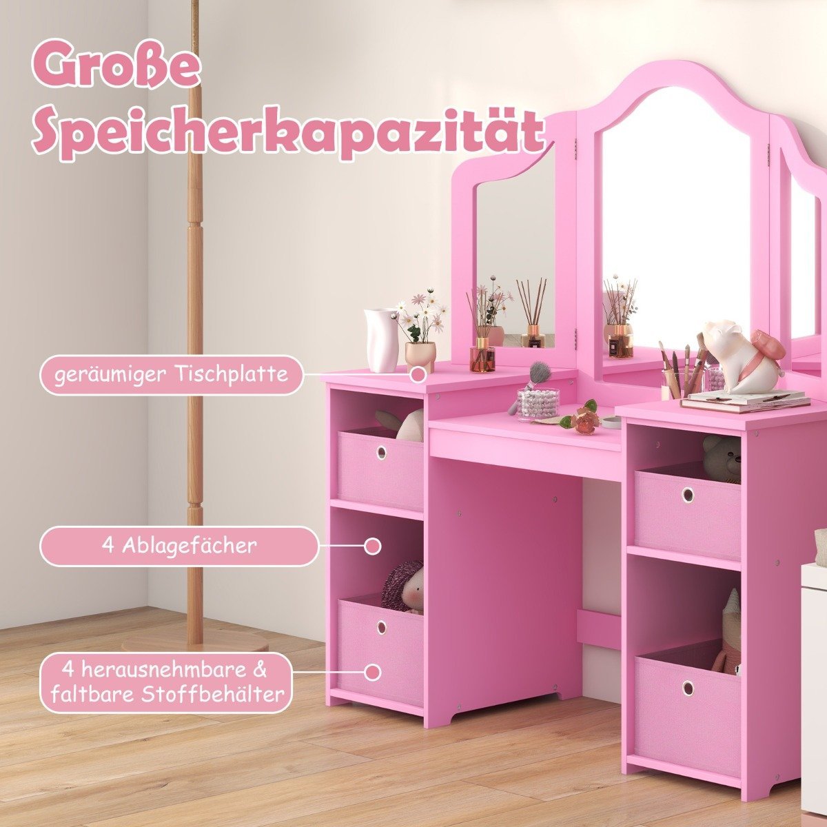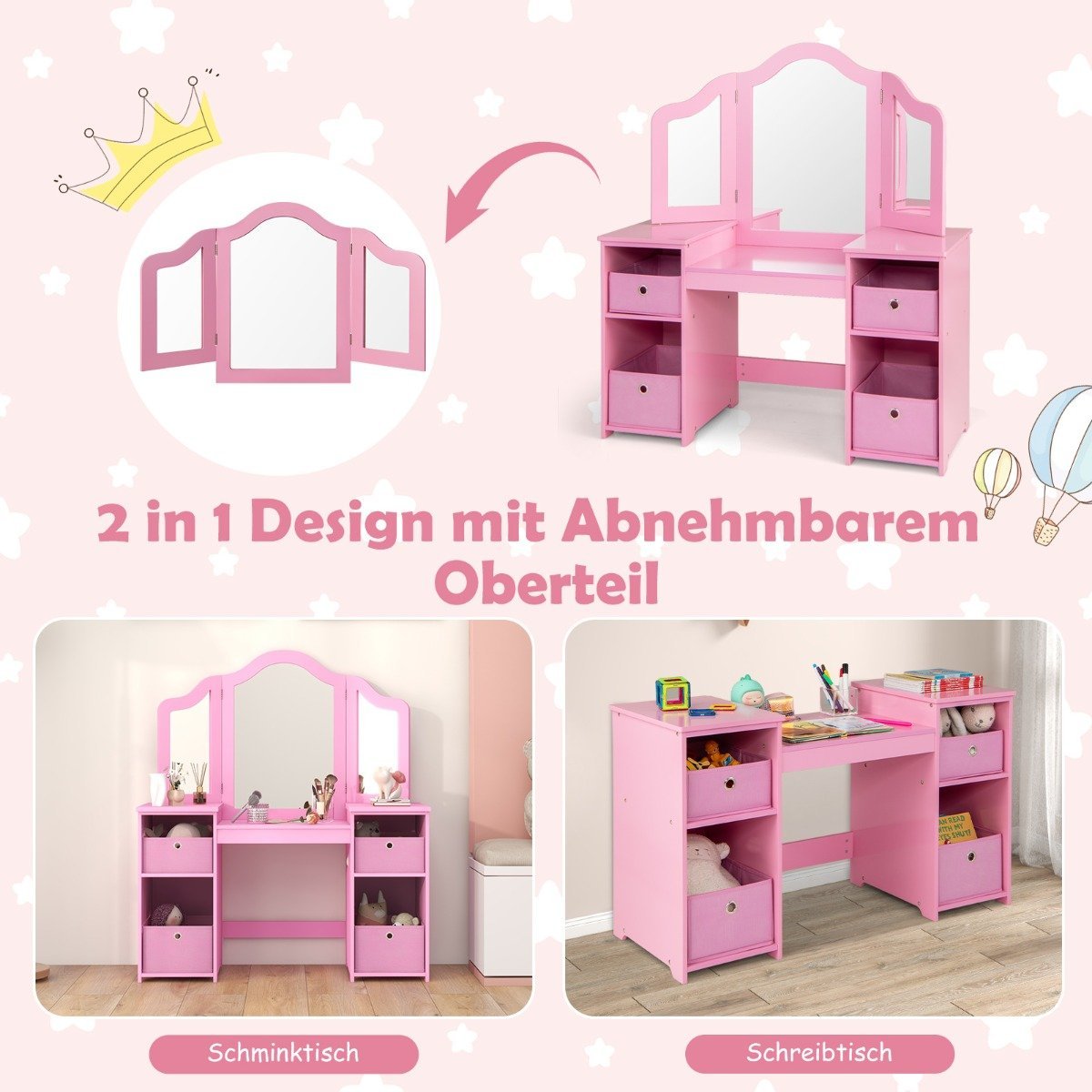 Vaikiškas grožio staliukas su nuimamu veidrodžiu ir stalčiais (Rožinė)