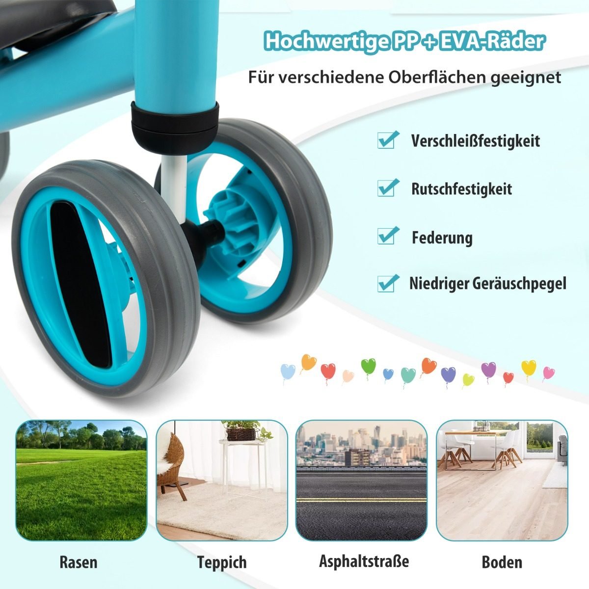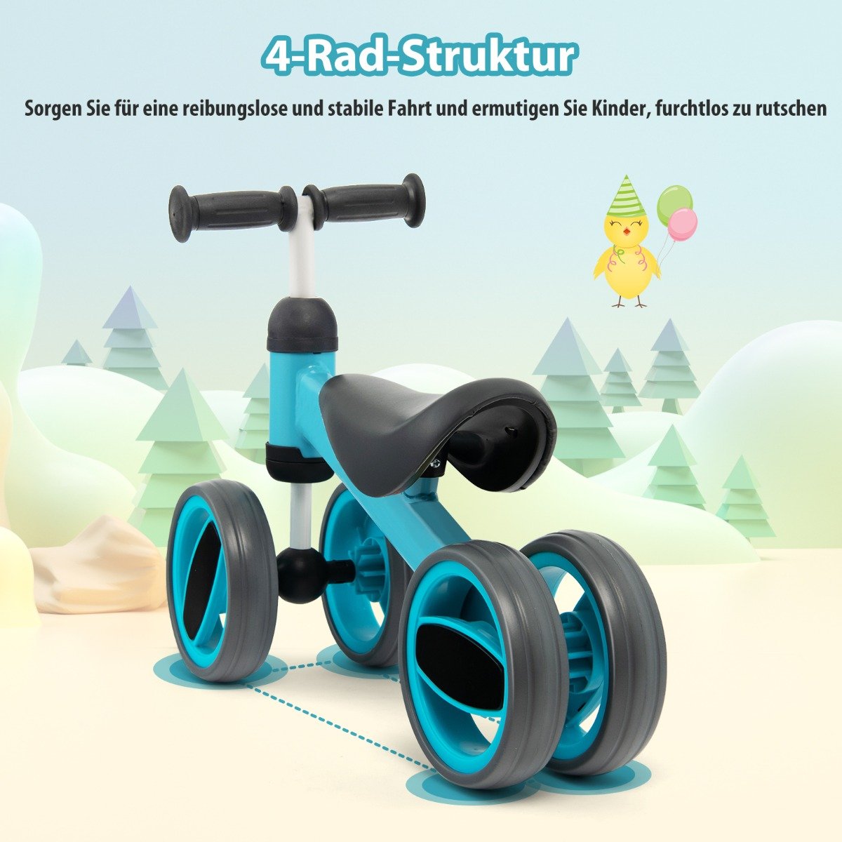 Keturių ratų dviratis – puiki dovana jūsų mažyliui nuo 1 iki 2 metų amžiaus. Jis padeda lavinti pusiausvyros pojūtį, didina pasitikėjimą savimi ir gerina koordinaciją.