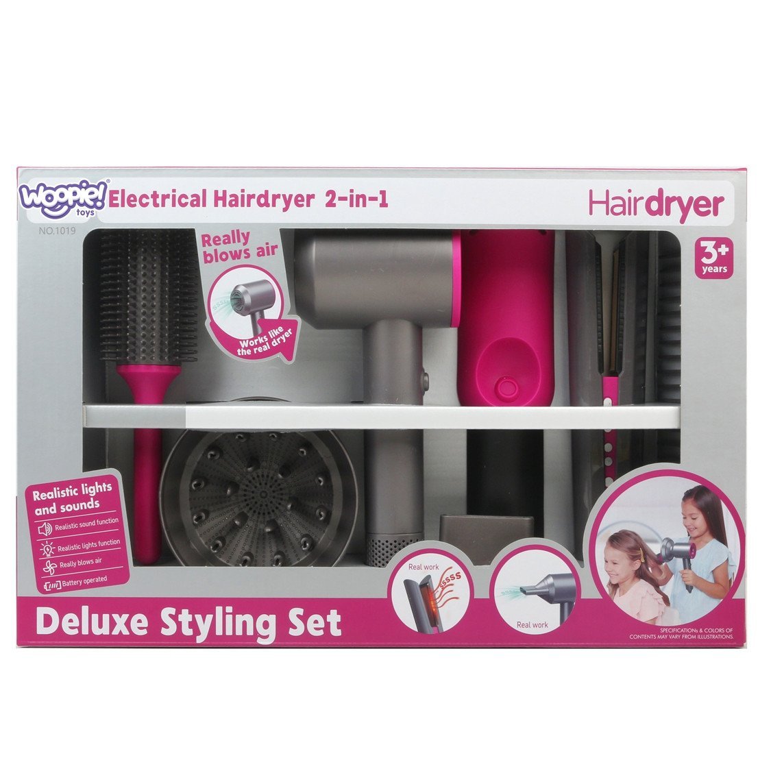 WOOPIE mažojo kirpėjo rinkinys su džiovintuvu ir tiesintuvu skirtas vaikams, mėgstantiems kūrybiškus žaidimus ir norintiems pamėgdžioti suaugusiuosius. Pagamintas iš saugių medžiagų, šis rinkinys leidžia mažiesiems pasijusti tikrais plaukų stilistais. Žaidimas su rinkiniu lavina smulkiąją motoriką, kūrybiškumą, vaizduotę ir komunikacinius gebėjimus.