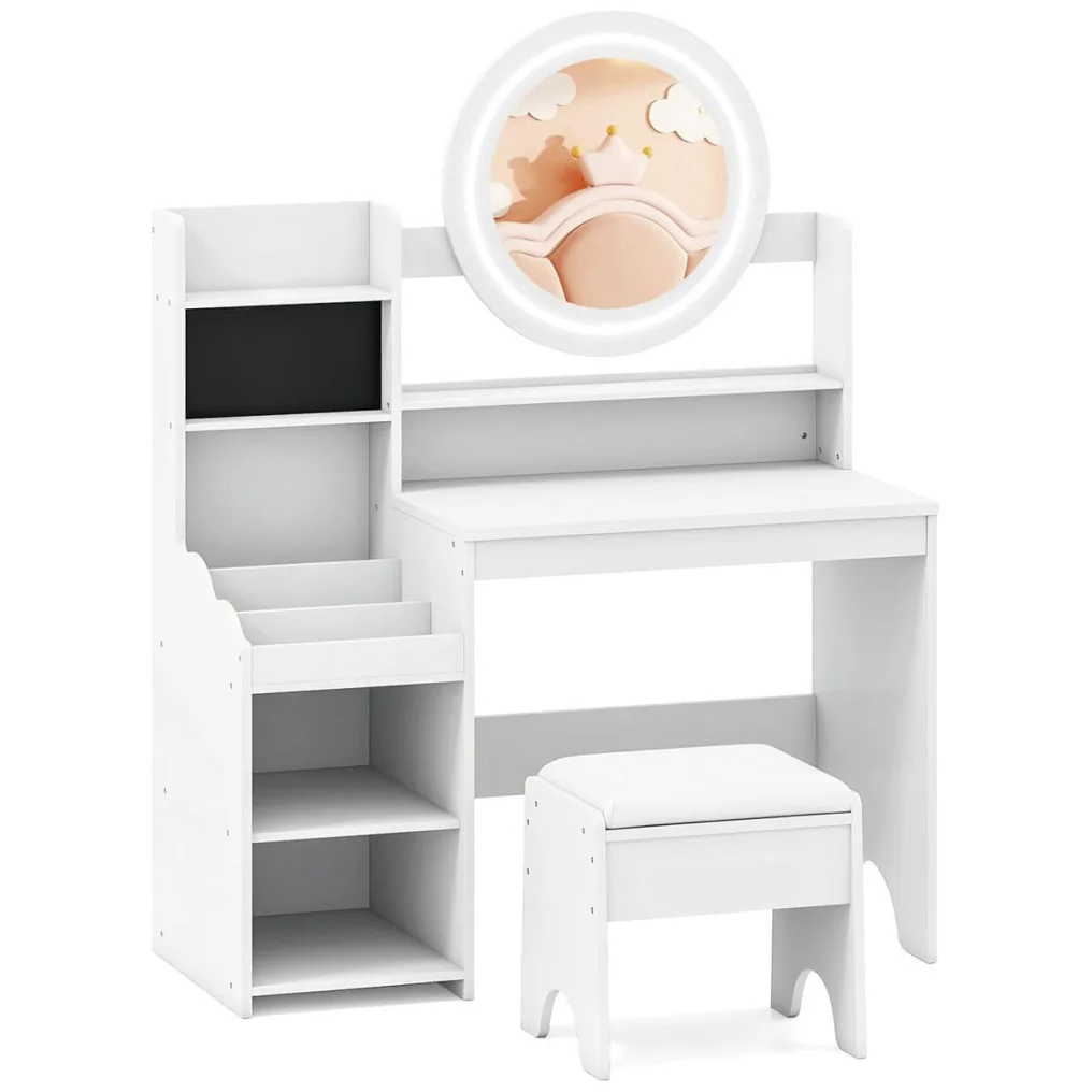 Vaikiškas kosmetinis staliukas su apšviečiamu veidrodžiu ir kėdute (Balta)