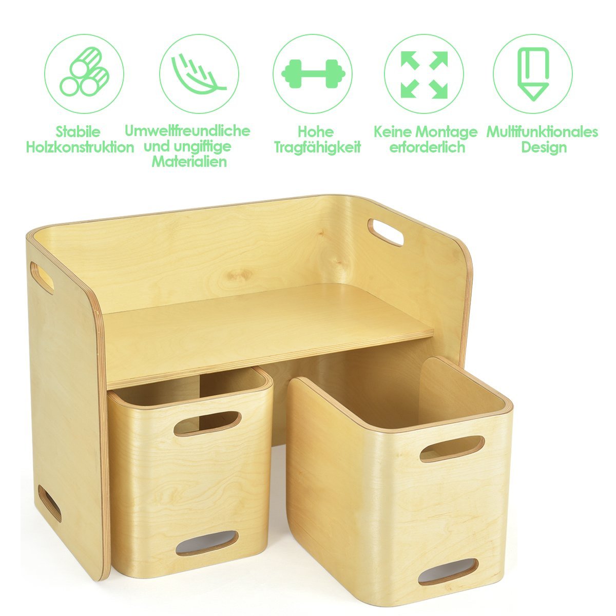 Vaikiškas medinis baldų komplektas su stalu ir kėdėmis (Natūrali)
