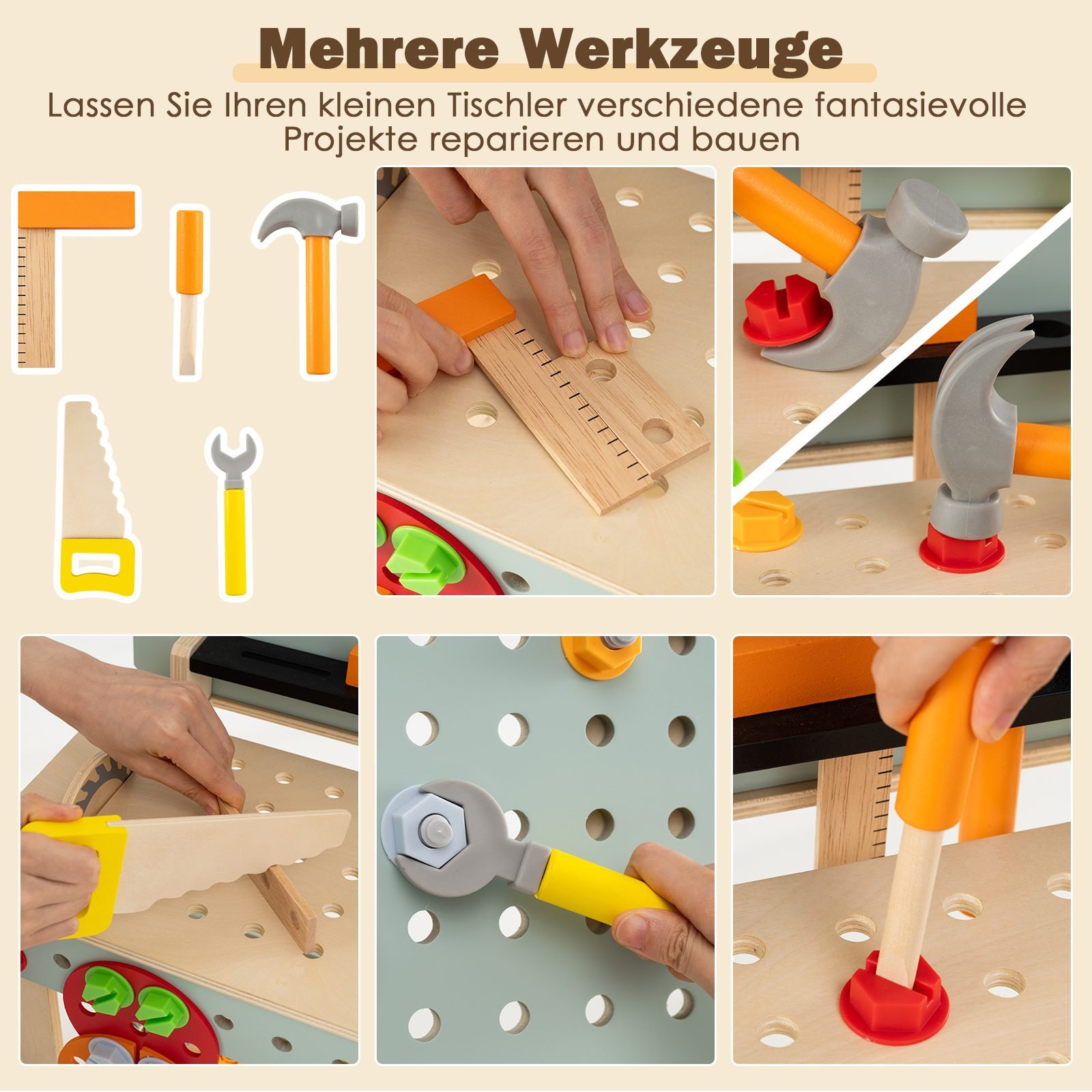 Vaikiškas medinis dirbtuvių stalas su priedais ir lenta (Įvairiaspalvė)