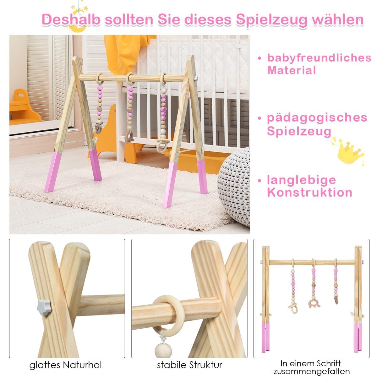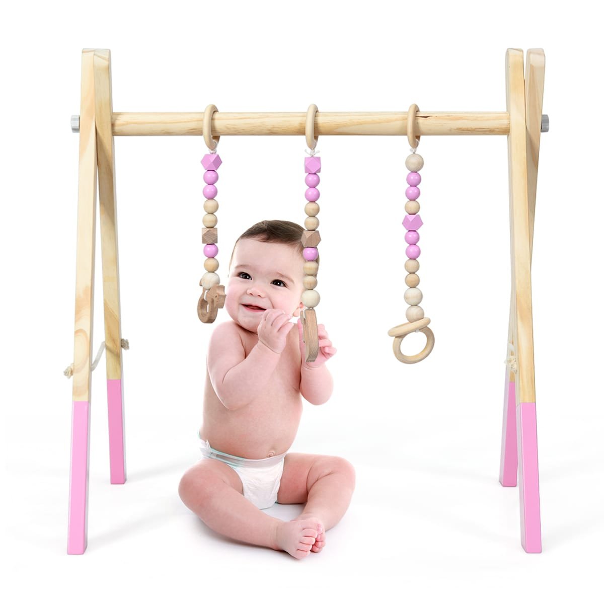 Vaikiškas medinis lavinamasis žaidimų lankas (Rožinė)