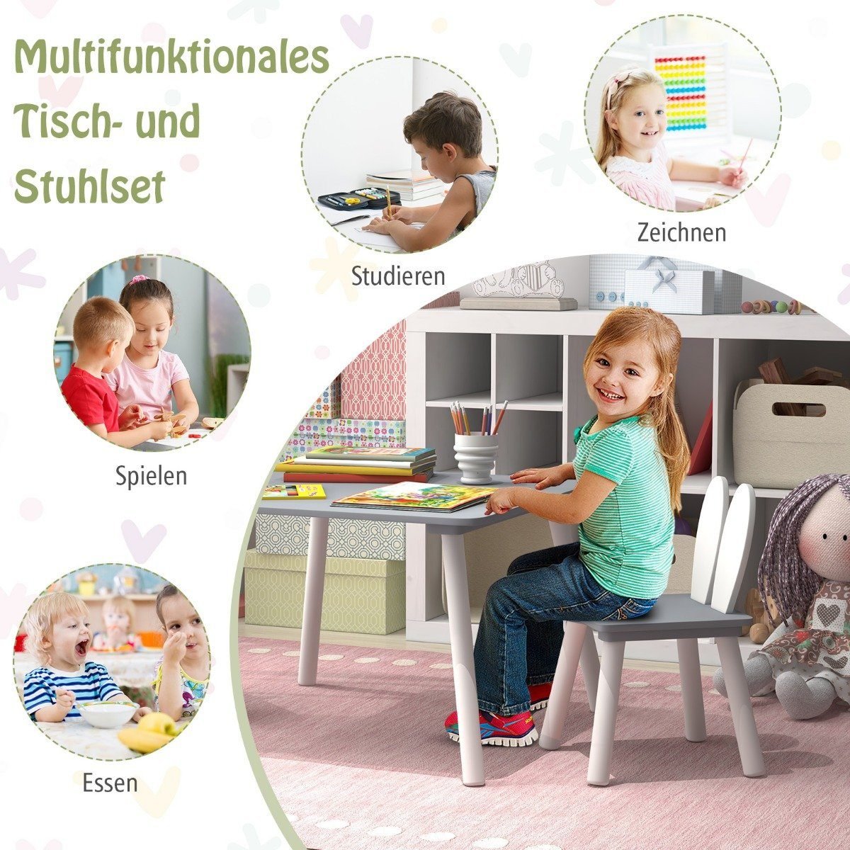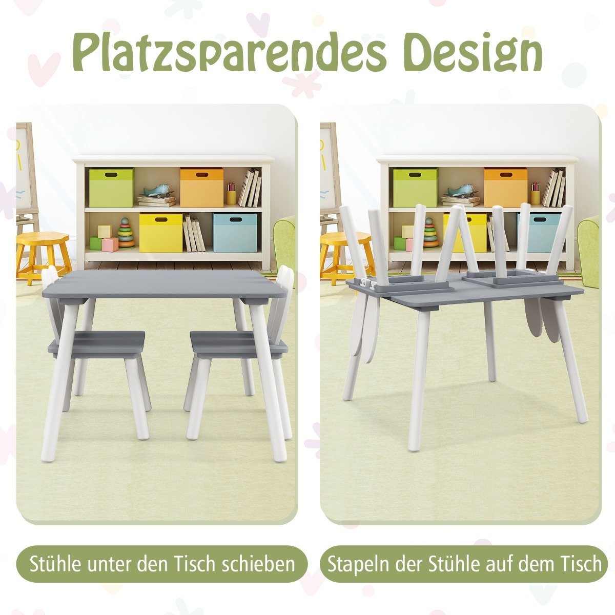 Vaikiškas medinis stalas su dviem kėdutėmis (Pilka)