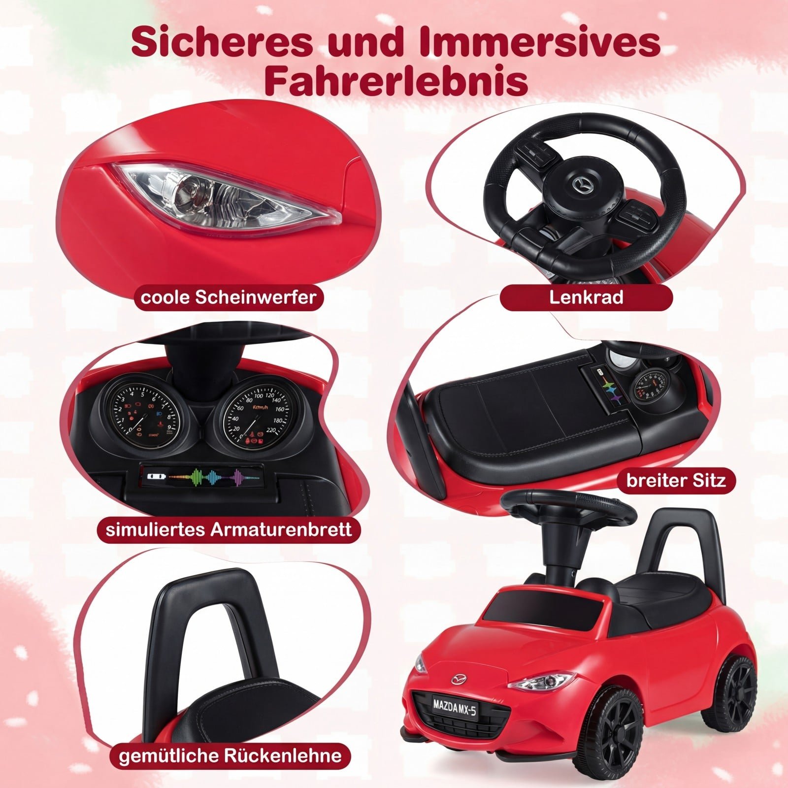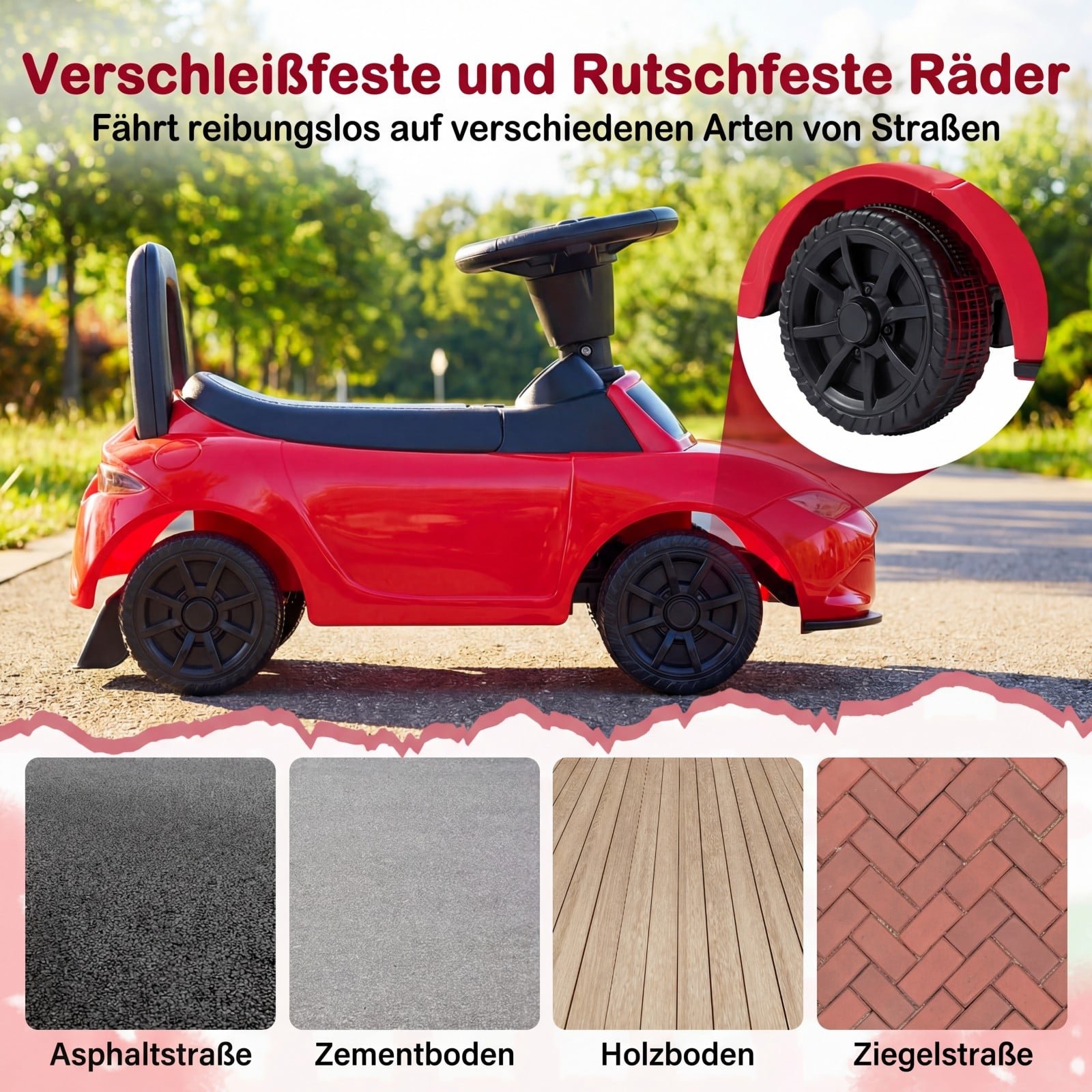Vaikiška mašinėlė paspirtukas su apsauga nuo apvirtimo ir daiktadėže po sėdyne (Raudona)