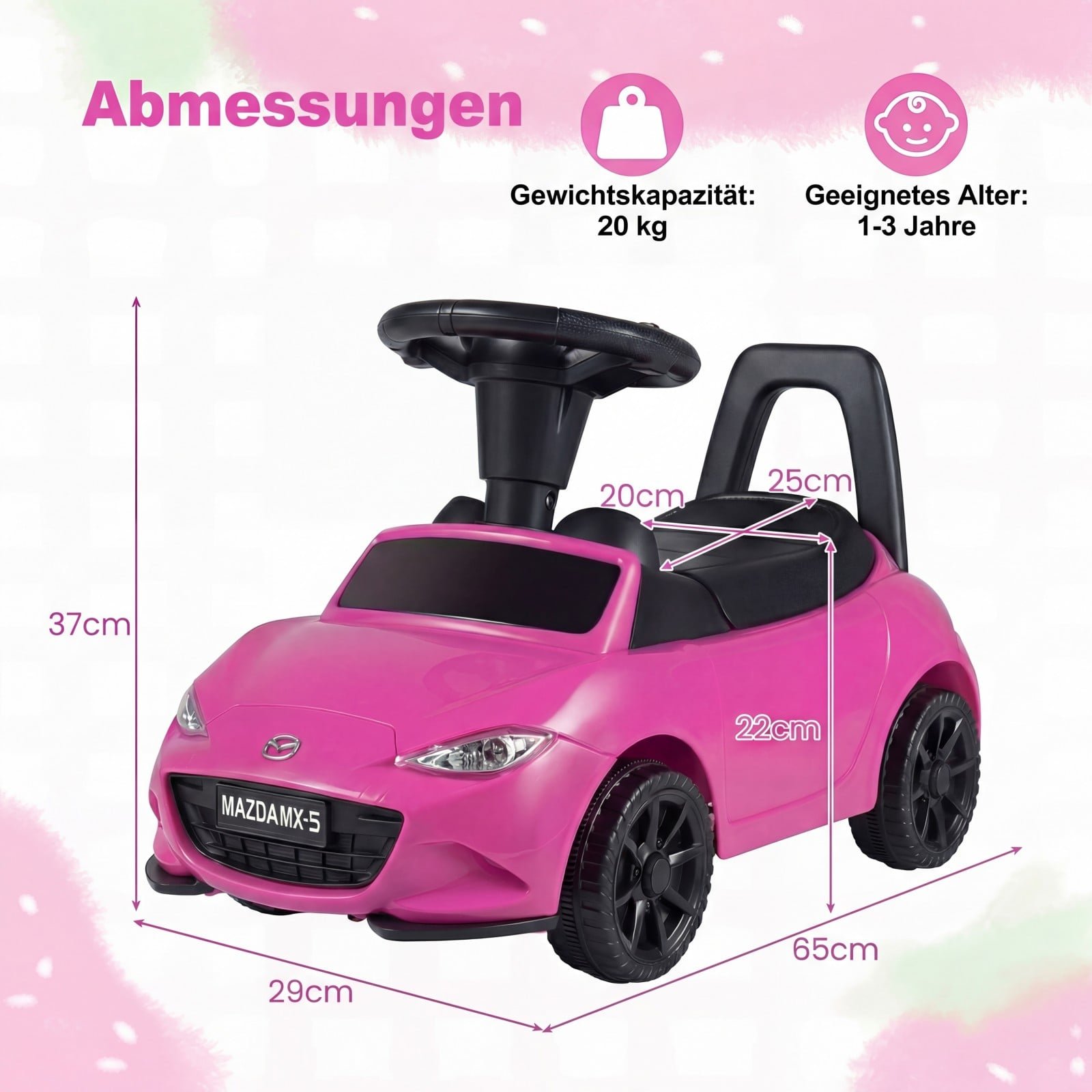 Ši kojomis varoma vaikiška mašinėlė su šviečiančiais žibintais pavers jūsų mažylio žaidimo laiką dar smagesniu ir aktyvesniu. Skatindama savarankišką judėjimą ir pusiausvyrą, ji leidžia vaikams tyrinėti pasaulį saugiai ir patogiai. Be to, po sėdyne integruota daiktadėžė suteikia praktišką vietą žaislams ar užkandžiams.