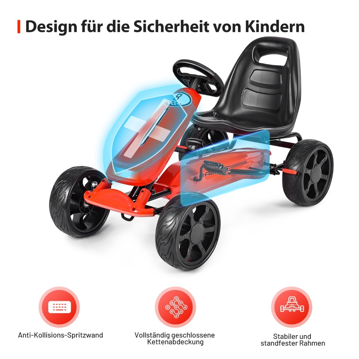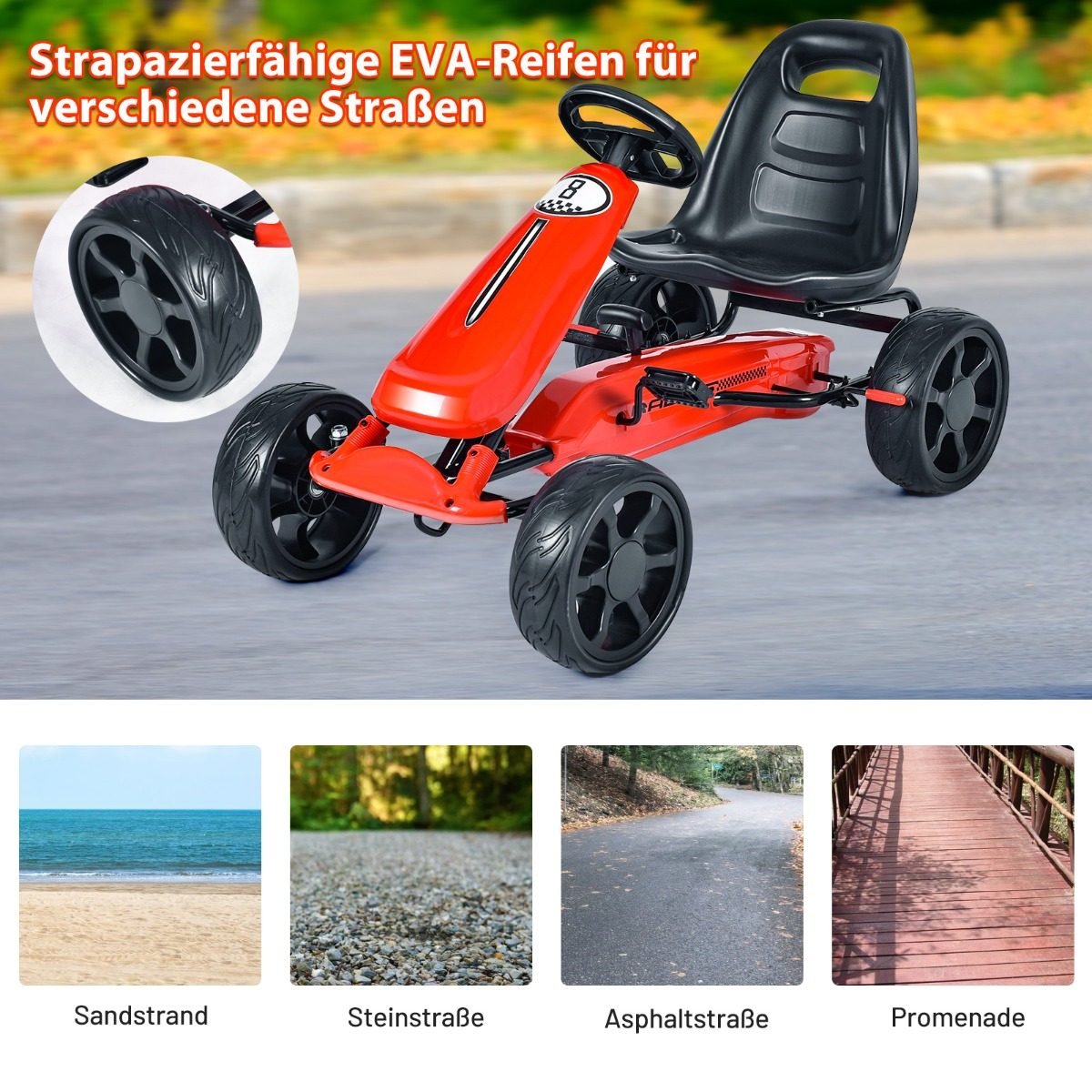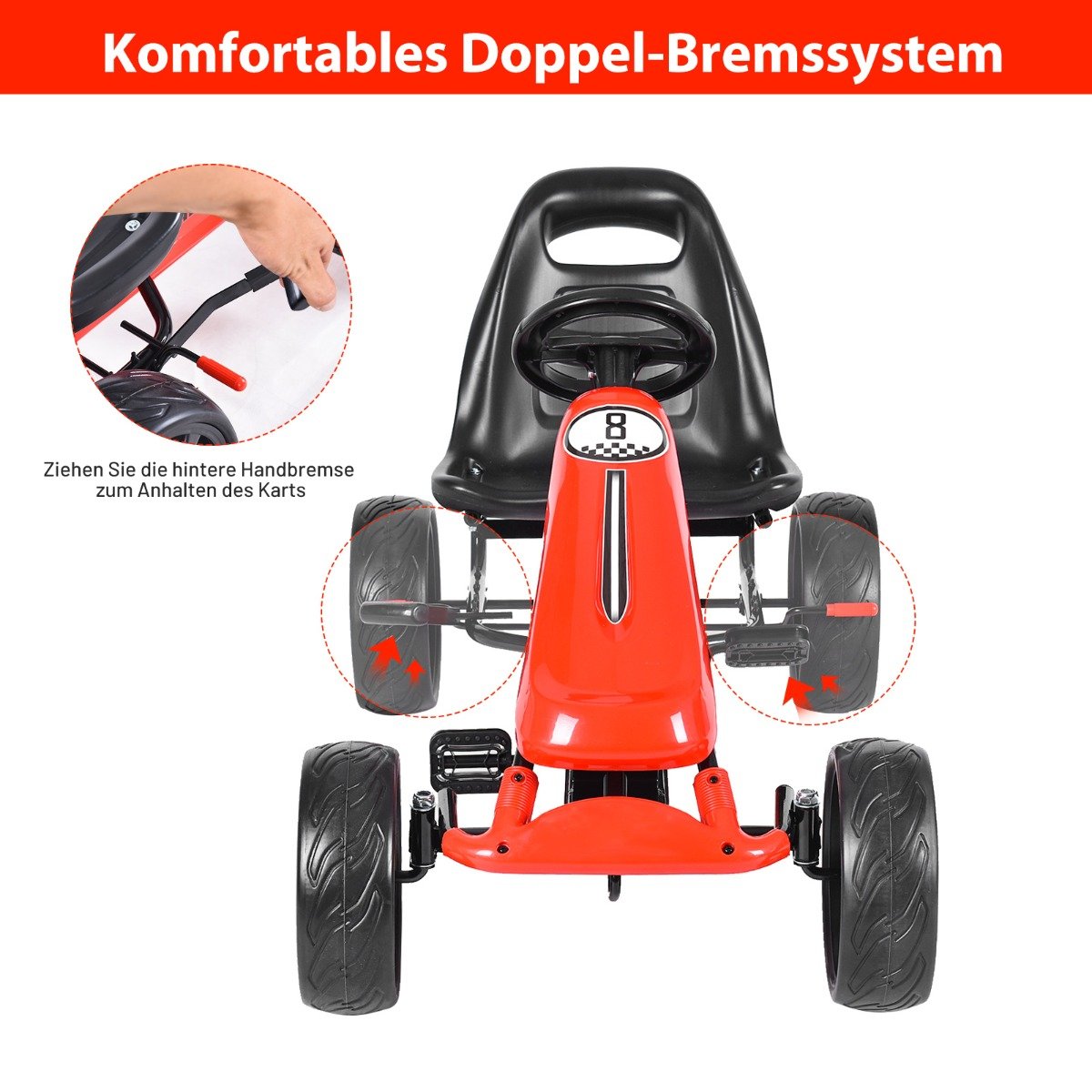 Vaikiškas pedalais varomas kartingas su reguliuojama sėdyne (Raudona)