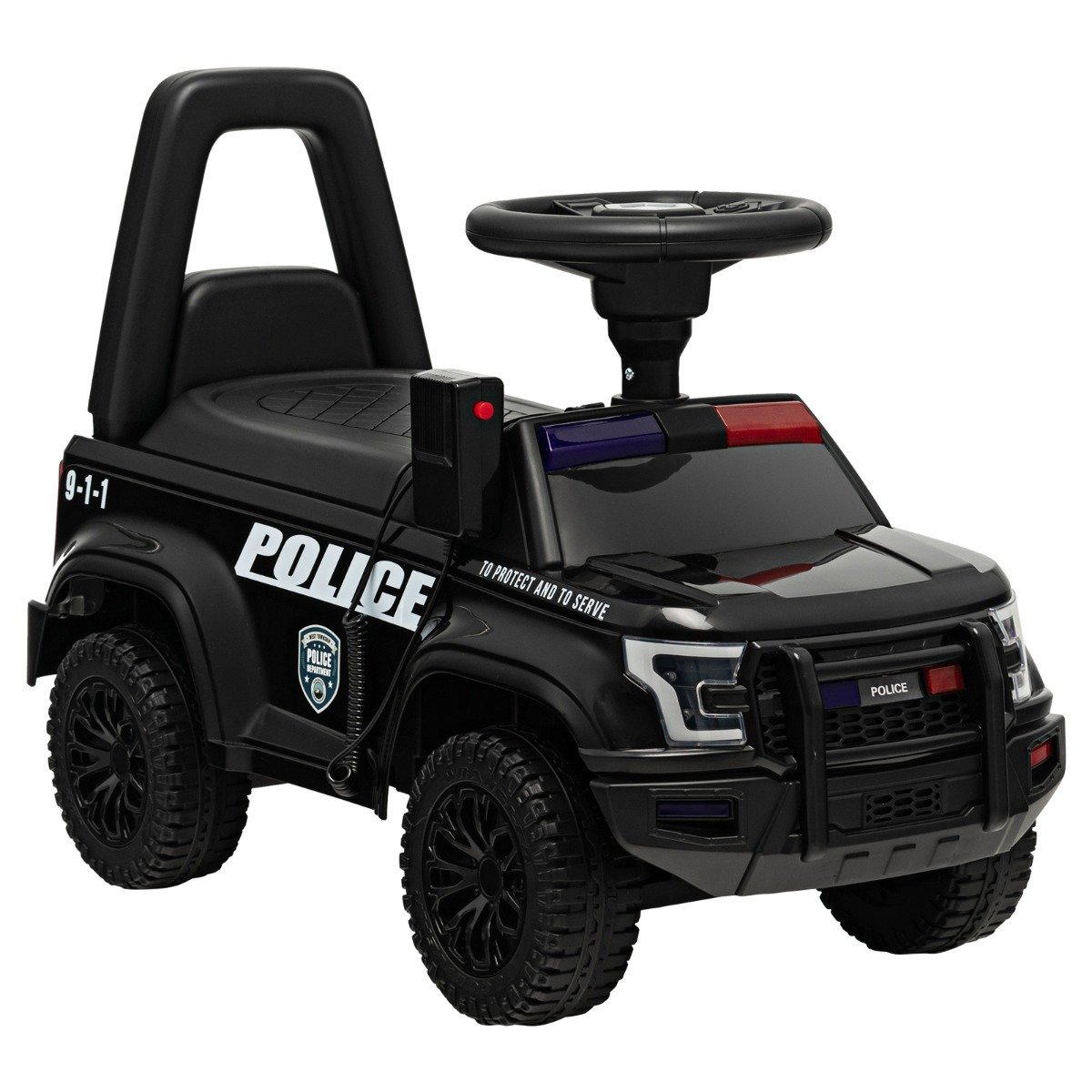 Šis vaikiškas policijos automobilis leis jūsų mažyliui pasijusti tikru pareigūnu! Su lipdukais, imituojančiais policijos automobilį, veikiančiais švyturėliais ir garsintuvu, automobilis suteiks daug džiaugsmo. Keturi ilgaamžiai ratai užtikrina sklandų važiavimą įvairiais paviršiais.