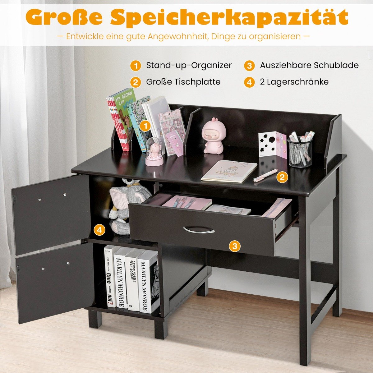 Vaikiškas rašomasis stalas su kėde ir laikymo spintelėmis (Ruda)