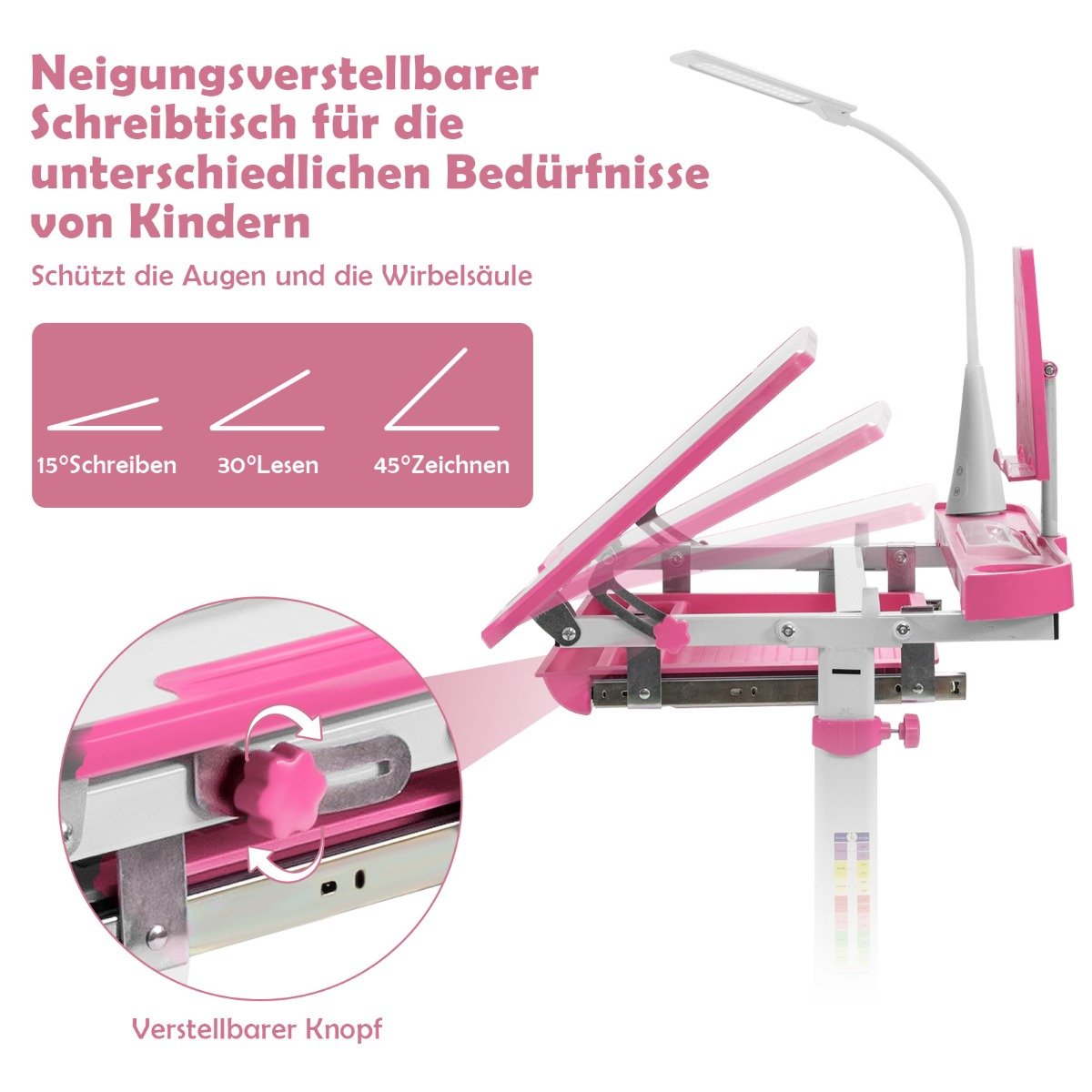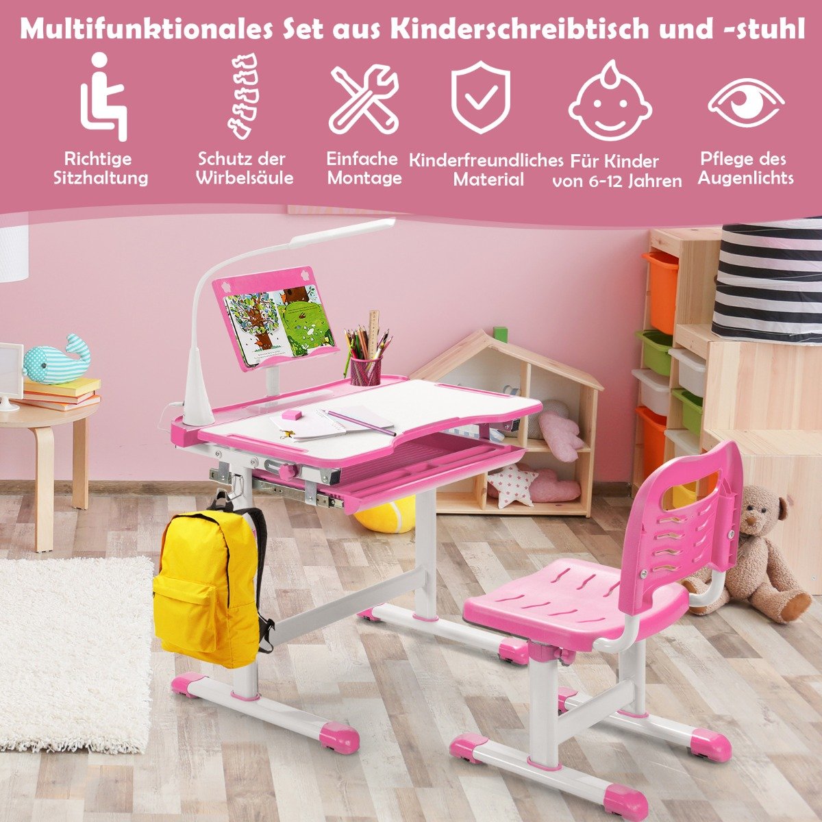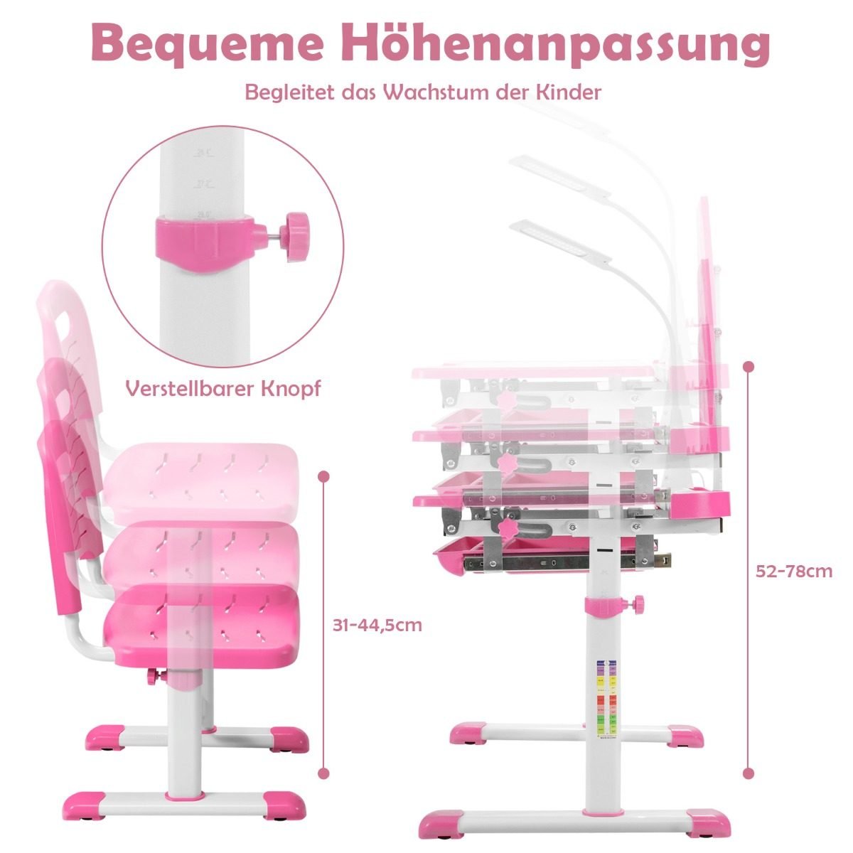 Vaikiškas rašomasis stalas su kėde ir LED apšvietimu (Rožinė)