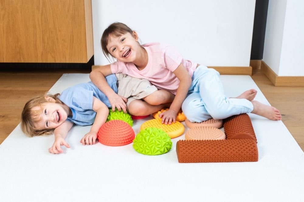 5 plokščius sensorinius diskus su įvairiais paviršiais (smaigais, šiurkščiais, apskritais ir banguotais)