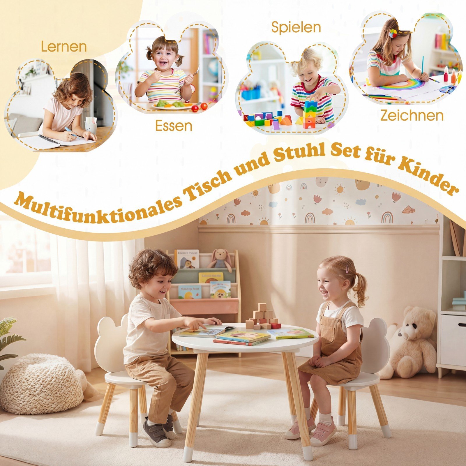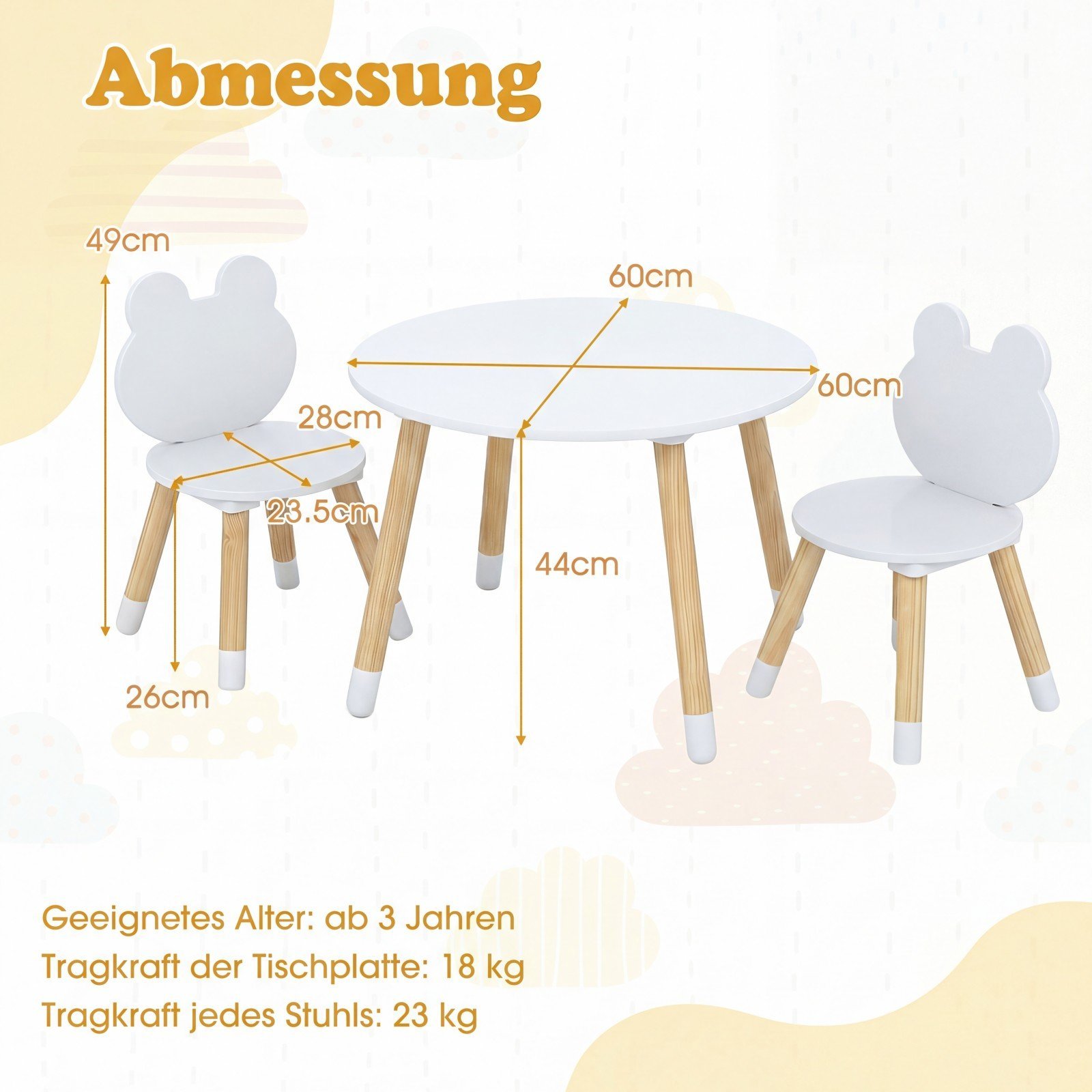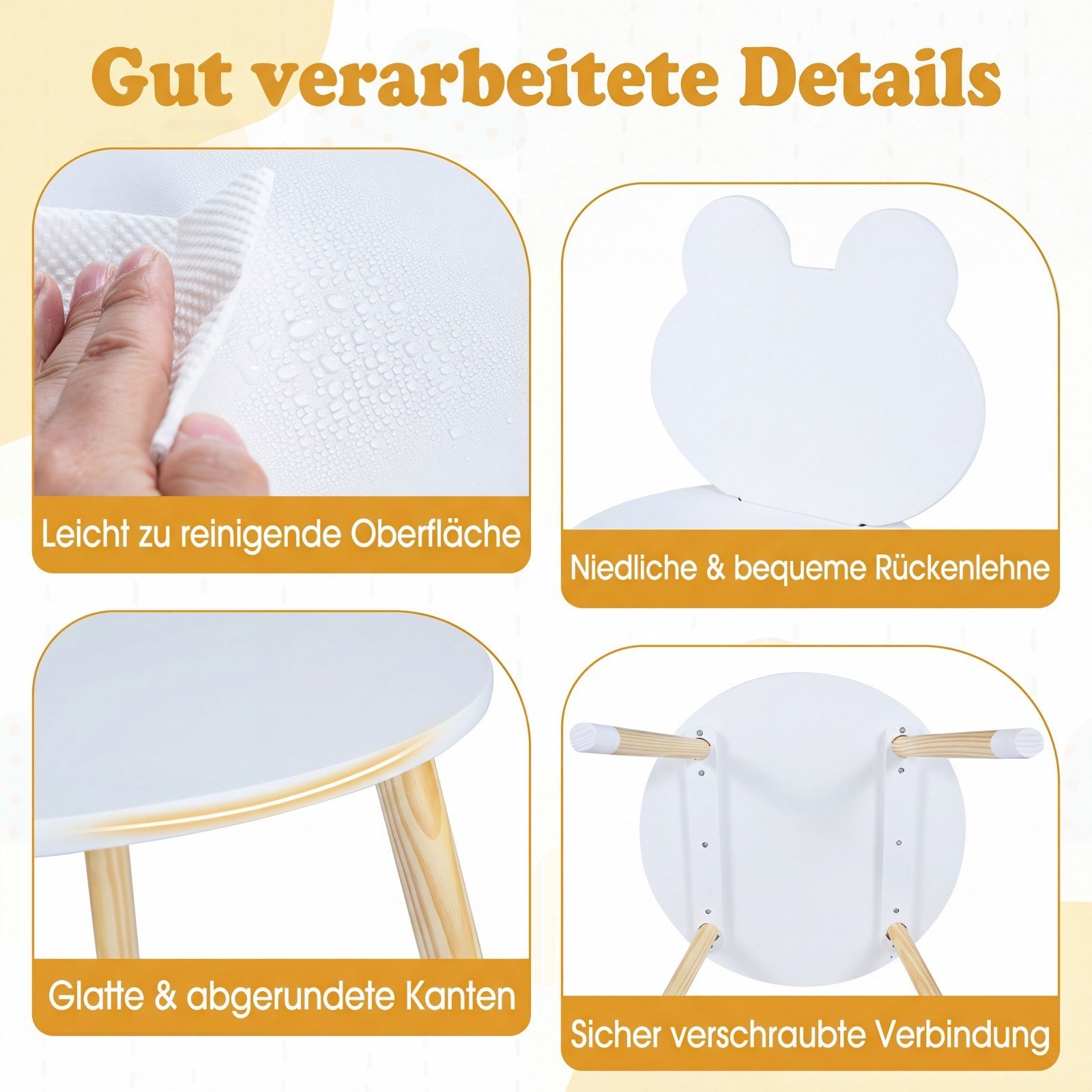 Vaikiškas stalas su 2 varlytės formos atlošų kėdutėmis (Balta)