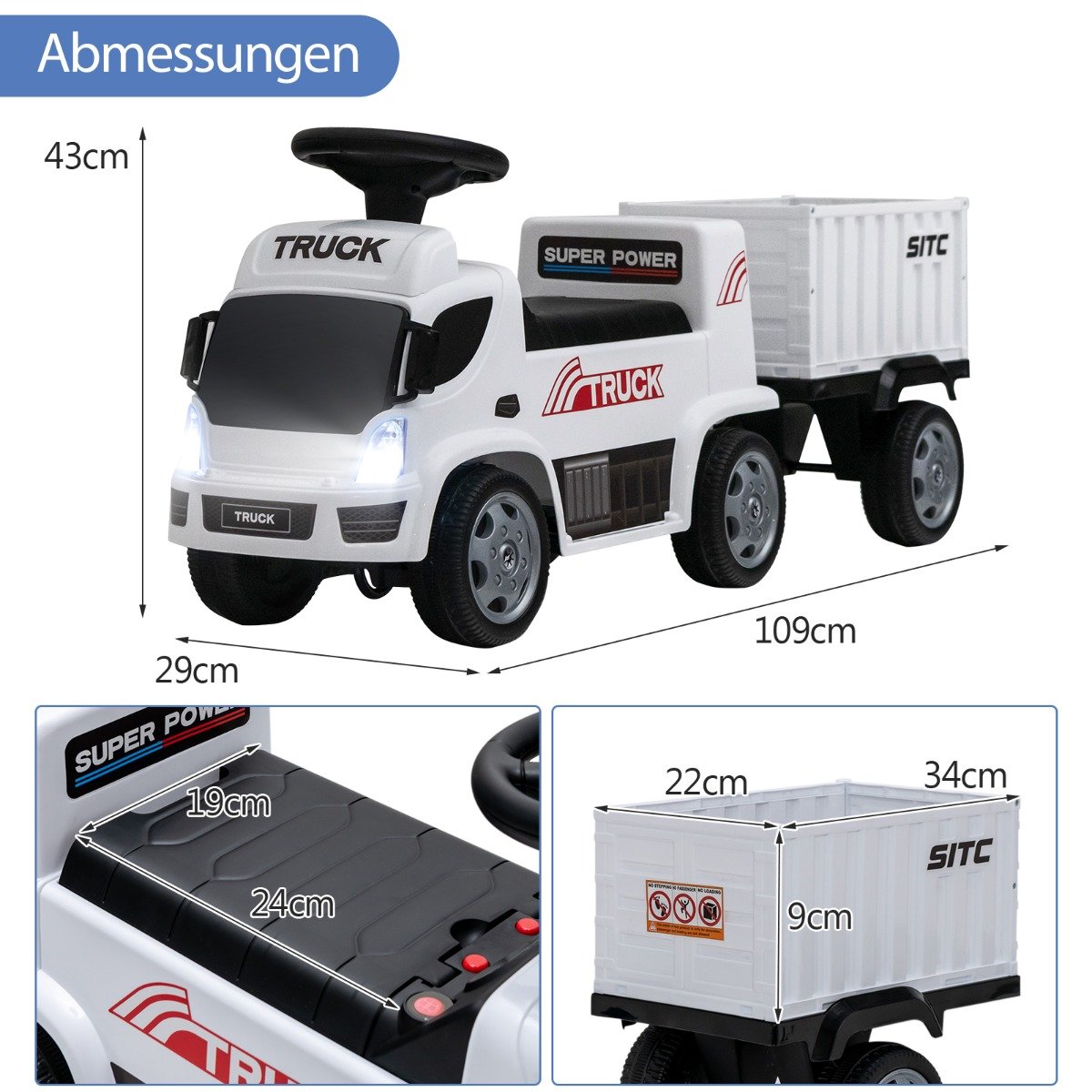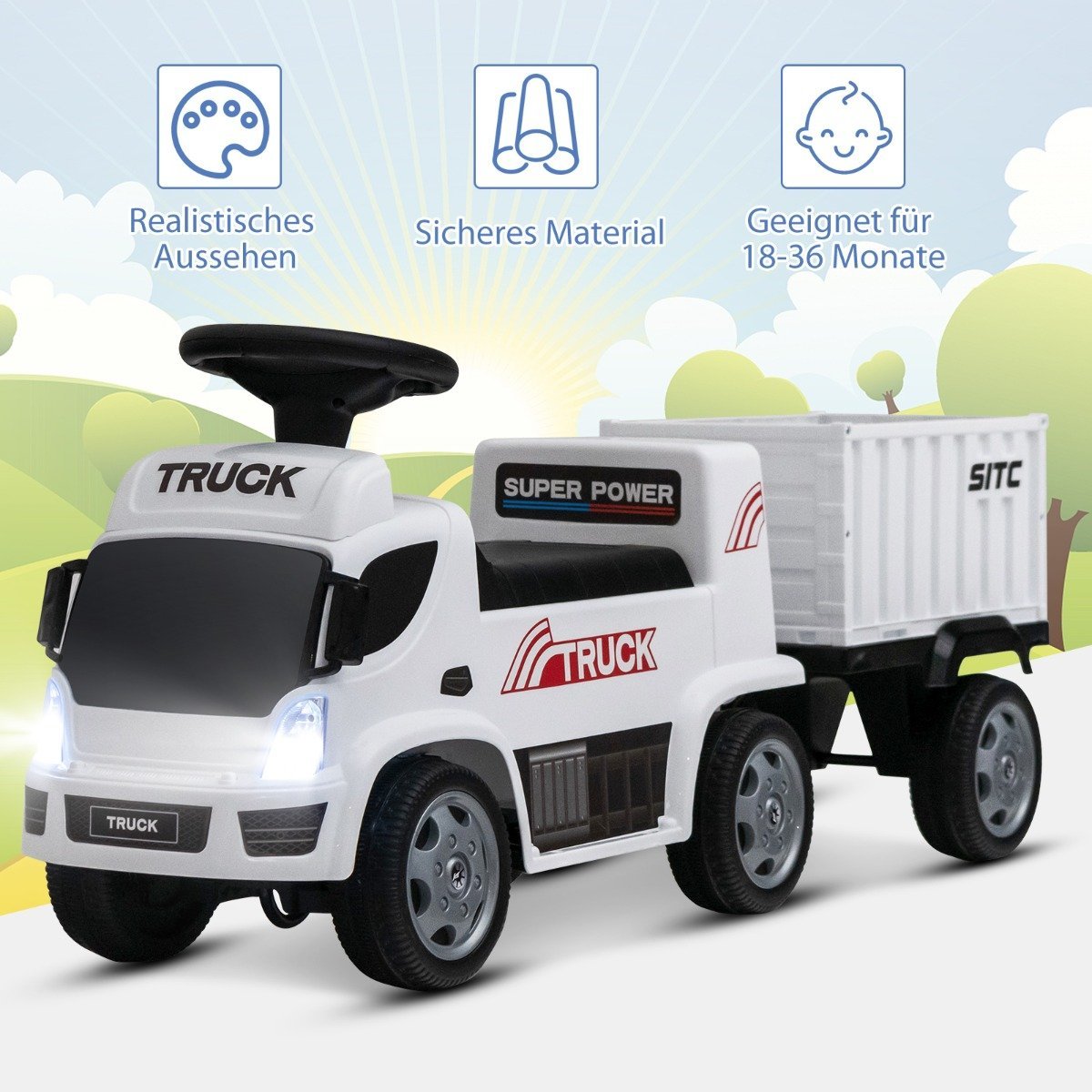 - Realistiškas sunkvežimio dizainas su muzika, šviesomis ir garsiniu signalu suteikia papildomos pramogos.