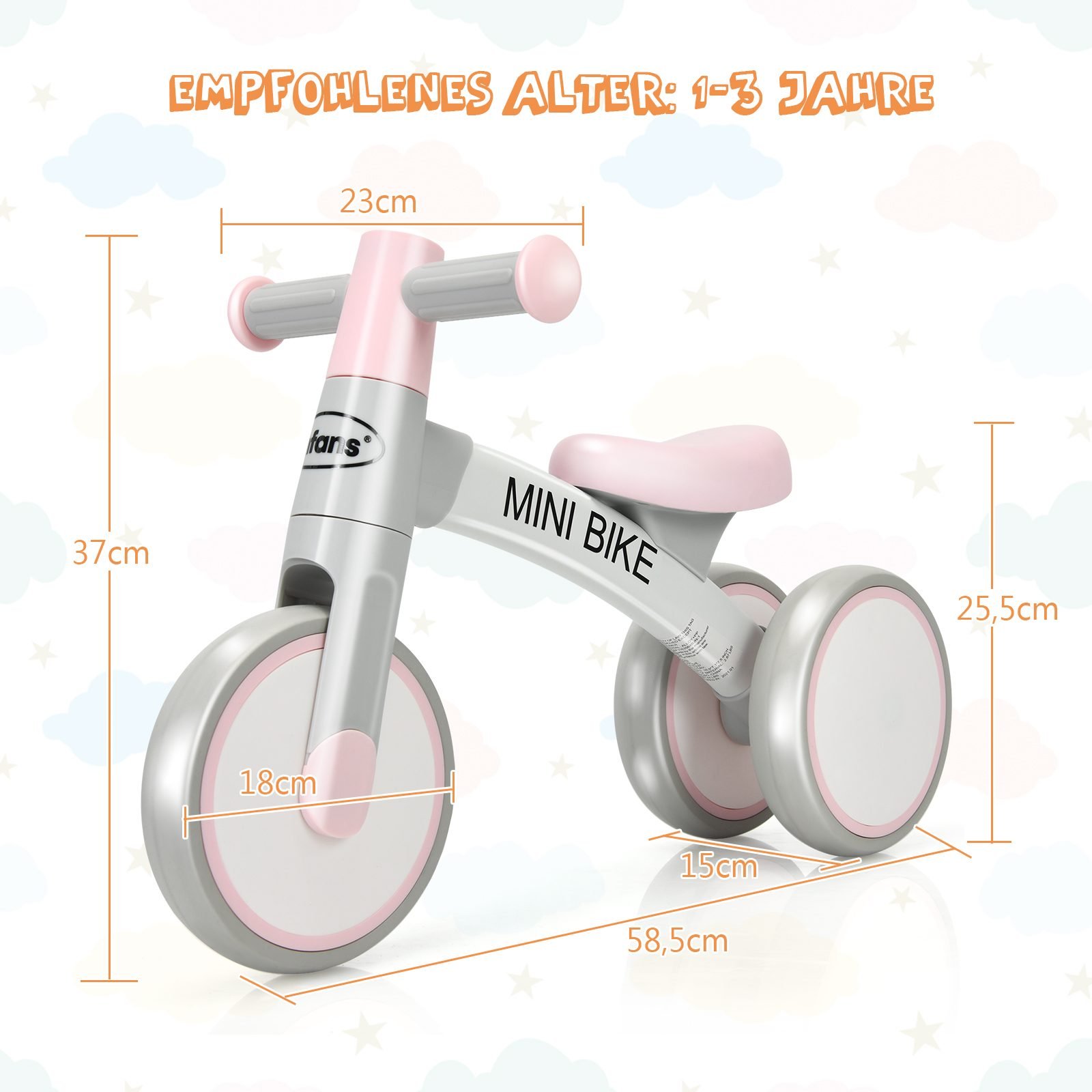 Tobulas pirmasis triratukas jūsų mažyliui, padėsiantis smagiai ir saugiai lavinti pagrindinius motorinius įgūdžius bei pusiausvyrą. Skirtas vaikams nuo 1 iki 3 metų, šis dviratukas taps puikiu įrankiu pasauliui pažinti.