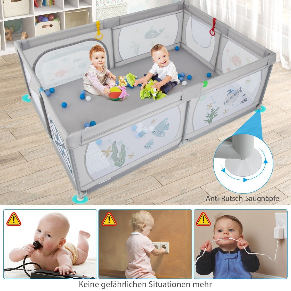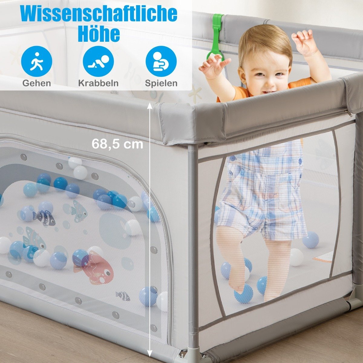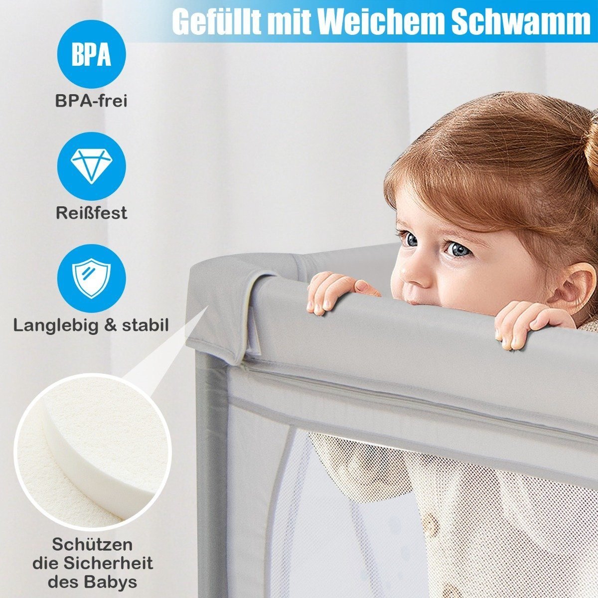 Užtikrinkite savo mažyliui saugią ir smagią žaidimų erdvę su šiuo aukštos kokybės aptvaru. Pagamintas iš netoksiško ir bekvapio Oksfordo audinio, jis suteikia vaikams pakankamai erdvės žaisti, bėgioti, stovėti, ropoti ir net miegoti.