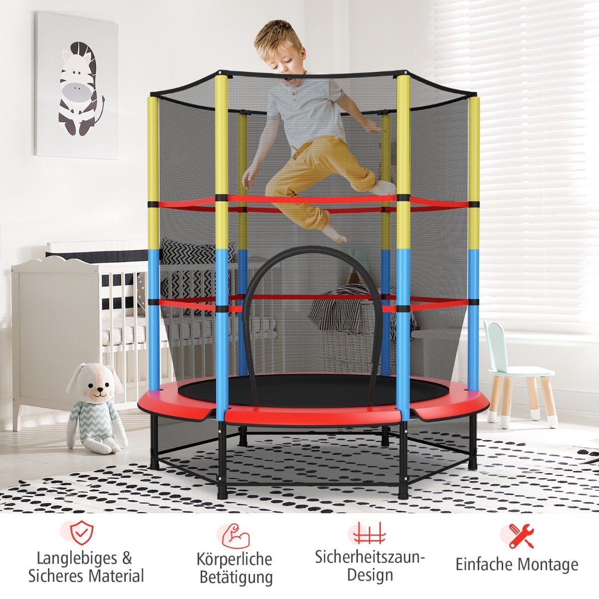 - Visapusiškas 360 laipsnių apsauginis tinklas ir minkštos, paminkštintos atramos užtikrina aukščiausią saugumą.