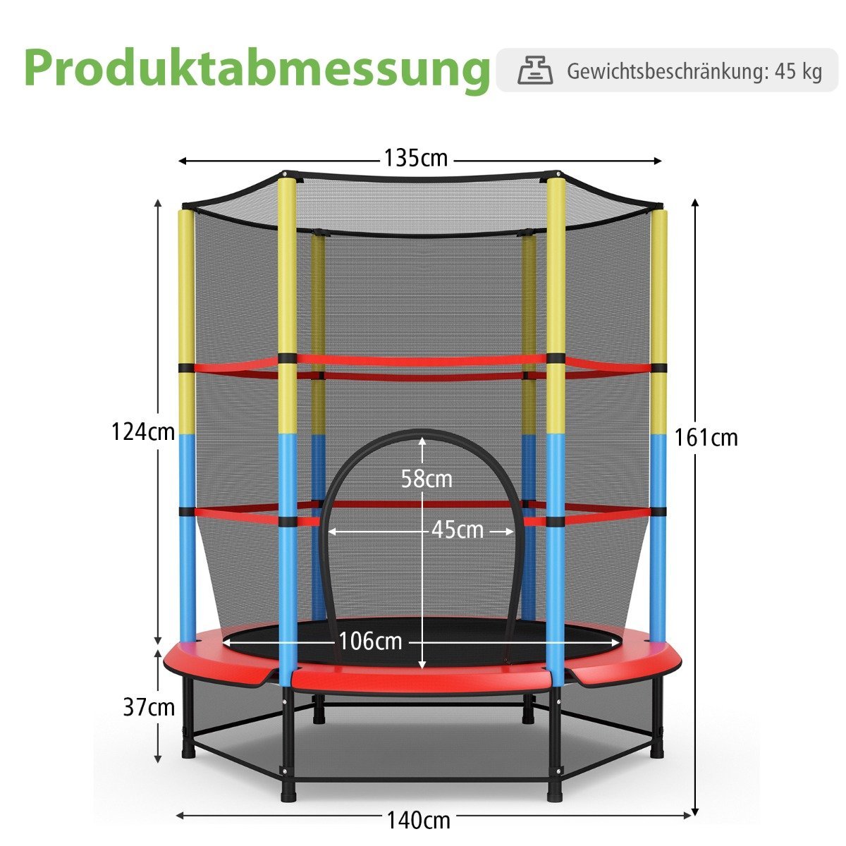 - Šokinėjimo zonos skersmuo: 106 cm