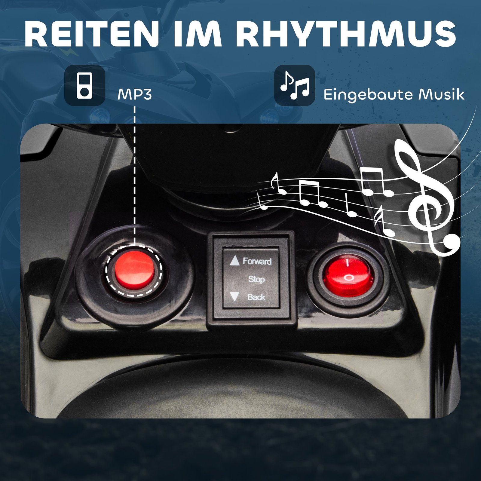 ✔ Integruota muzika ir ryškūs vaikiško keturračio žibintai įspūdingai vairavimo patirčiai.