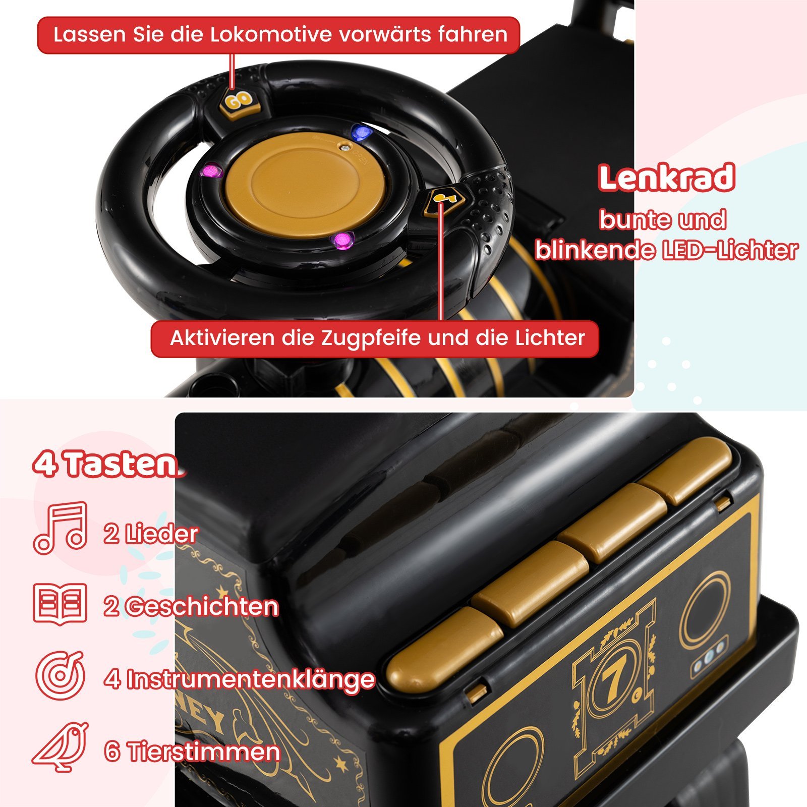 Vaikų elektrinis traukinukas su vagonu ir daiktadėže po sėdyne (Juoda)