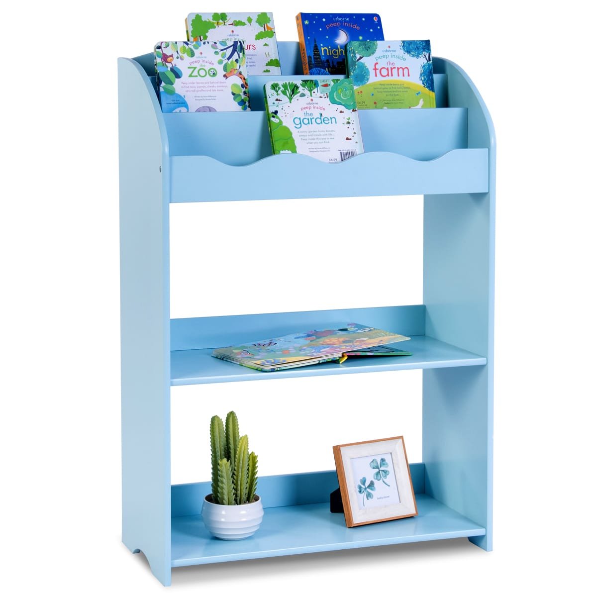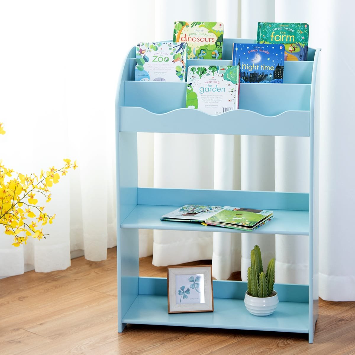 Vaikų knygų lentyna su 5 skyriais ir saugojimo funkcija (Mėlyna)