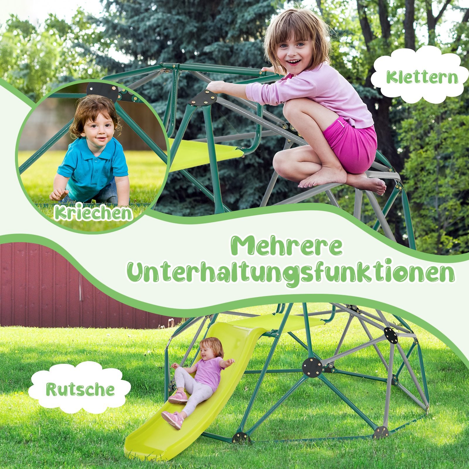 Vaikų laipiojimo kupolas su čiuožykla ir platforma (Žalia)