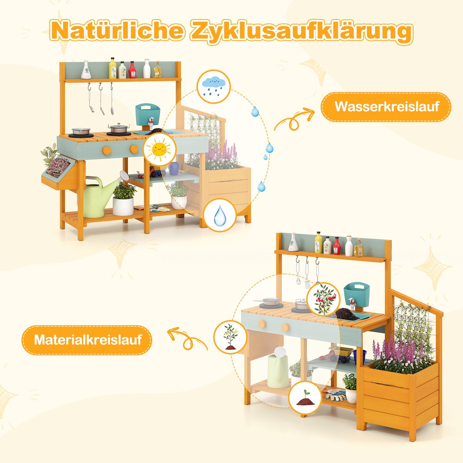Vaikų lauko purvo virtuvėlė su daigykla grotelėmis ir vandens funkcija (Geltona)