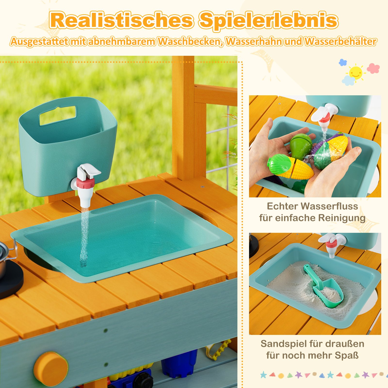 Vaikų lauko virtuvėlė su vandens funkcija ir daigyklomis (Žalia)