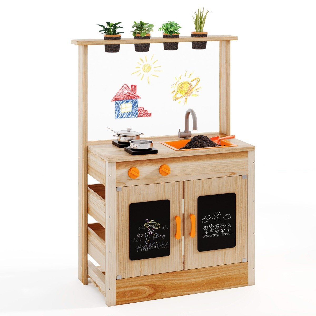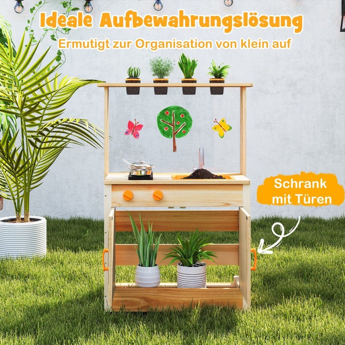 Vaikų lauko virtuvėlė su augalų vazonėliais (Natūrali)