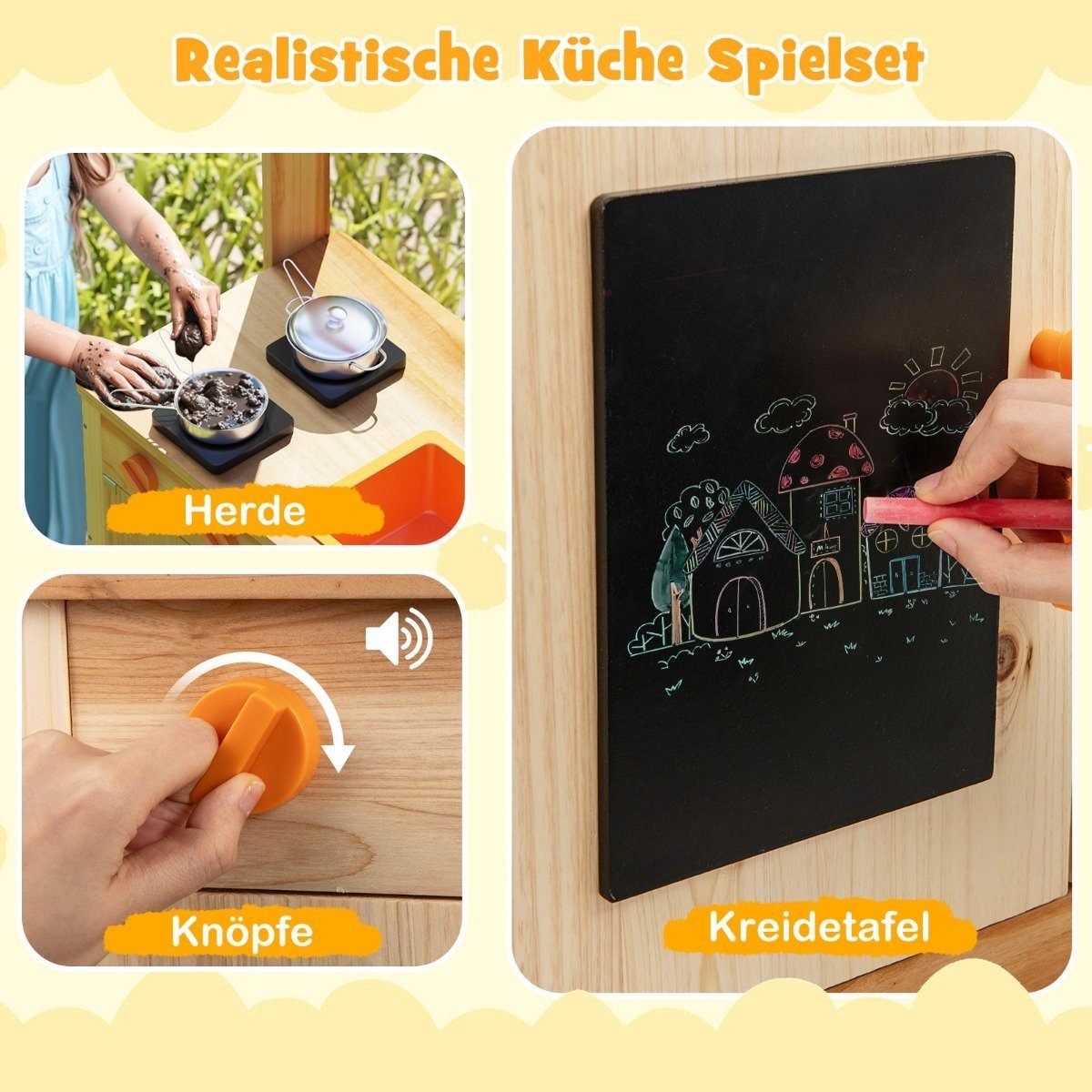Suteikite vaikams galimybę tyrinėti gamtą ir ugdyti kūrybiškumą su šia tvirta lauko virtuvėle. Pagaminta iš aukščiausios kokybės eglės medienos, ji užtikrina saugumą ir ilgaamžiškumą, skatina vaikų vaizduotę bei organizacinius įgūdžius.