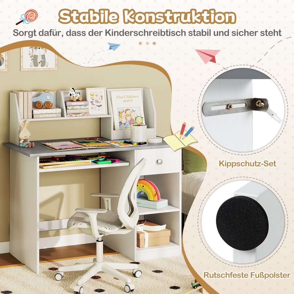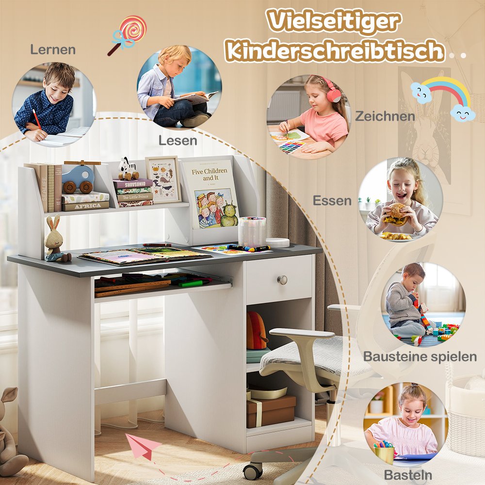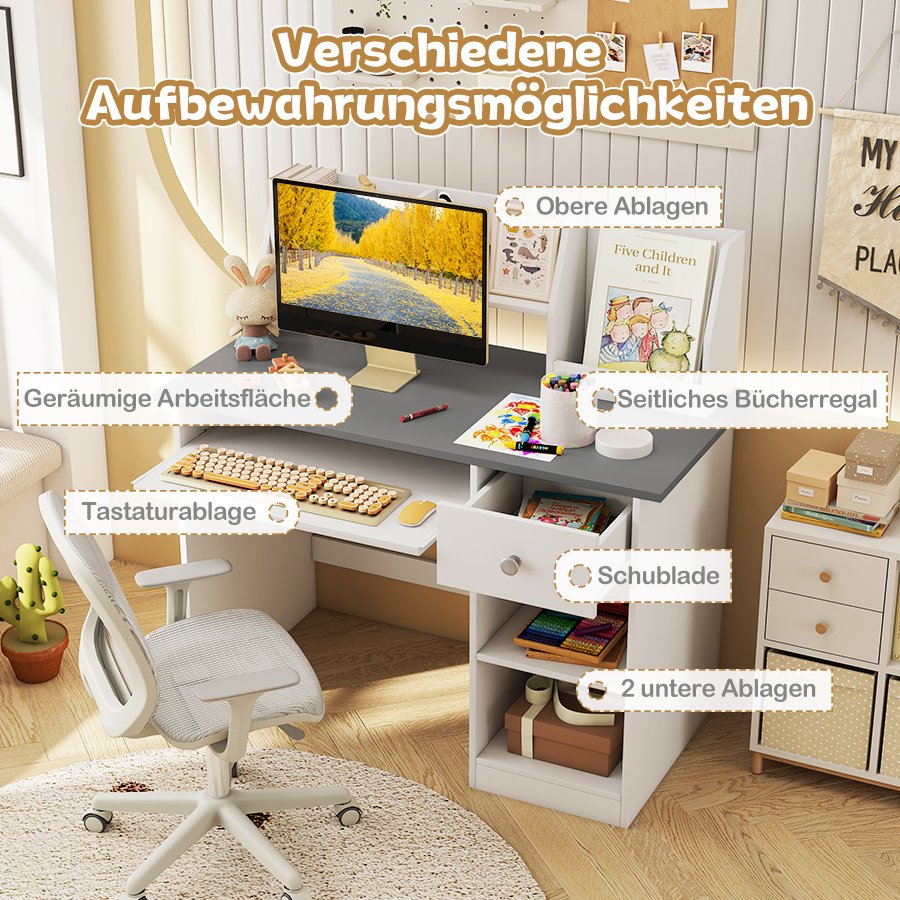 Vaikų rašomasis stalas su knygų lentyna ir ištraukiamu klaviatūros stalčiumi