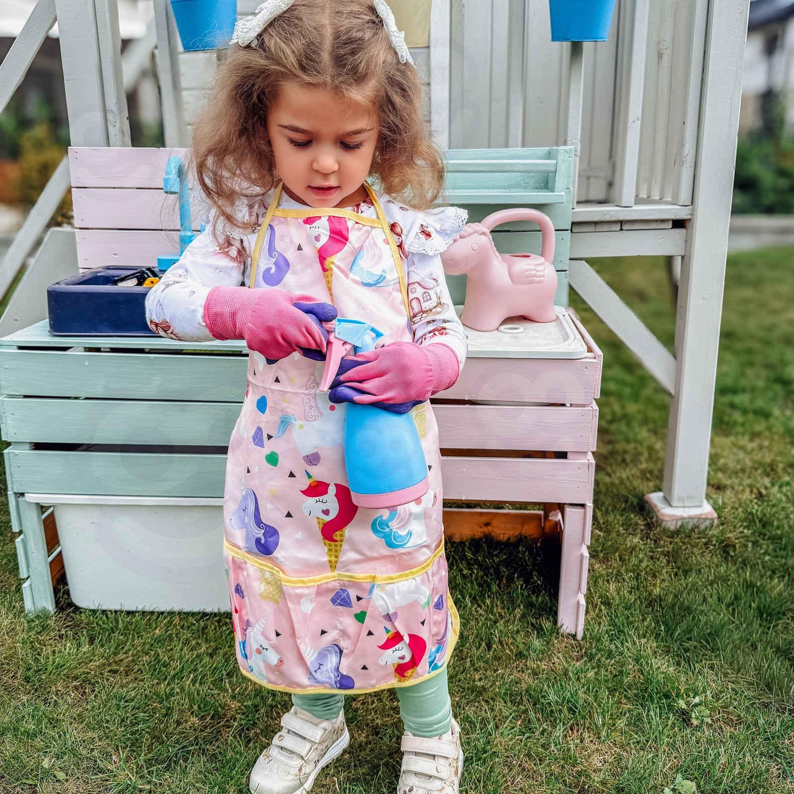 - Spalvinga prijuostė su vienaragio motyvu – apsauga ir žaismingumas.