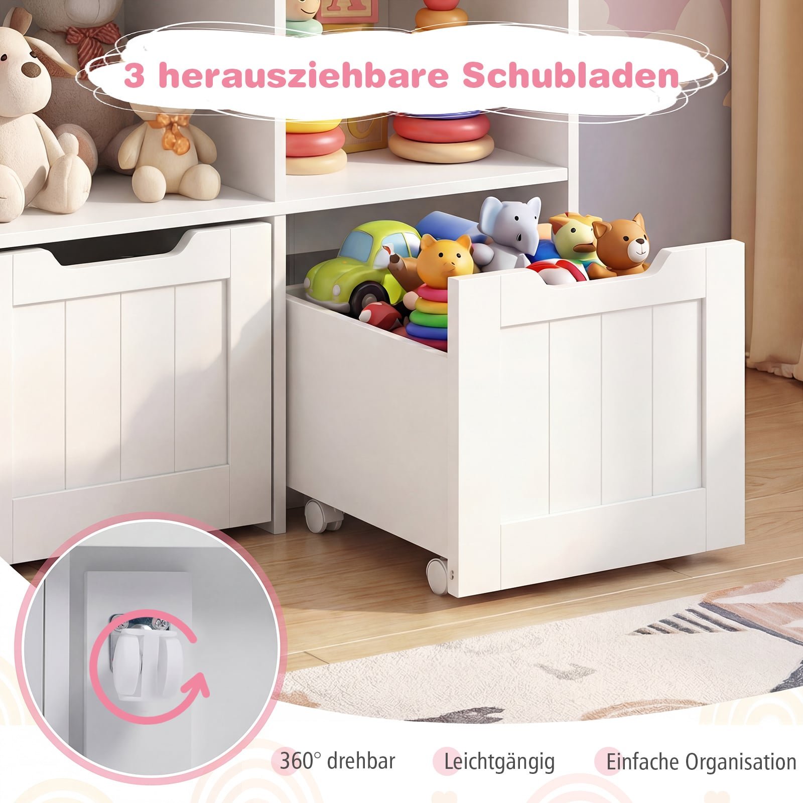 Vaikų spintelė ant ratukų su atvirais skyriais ir stalčiais (Balta)