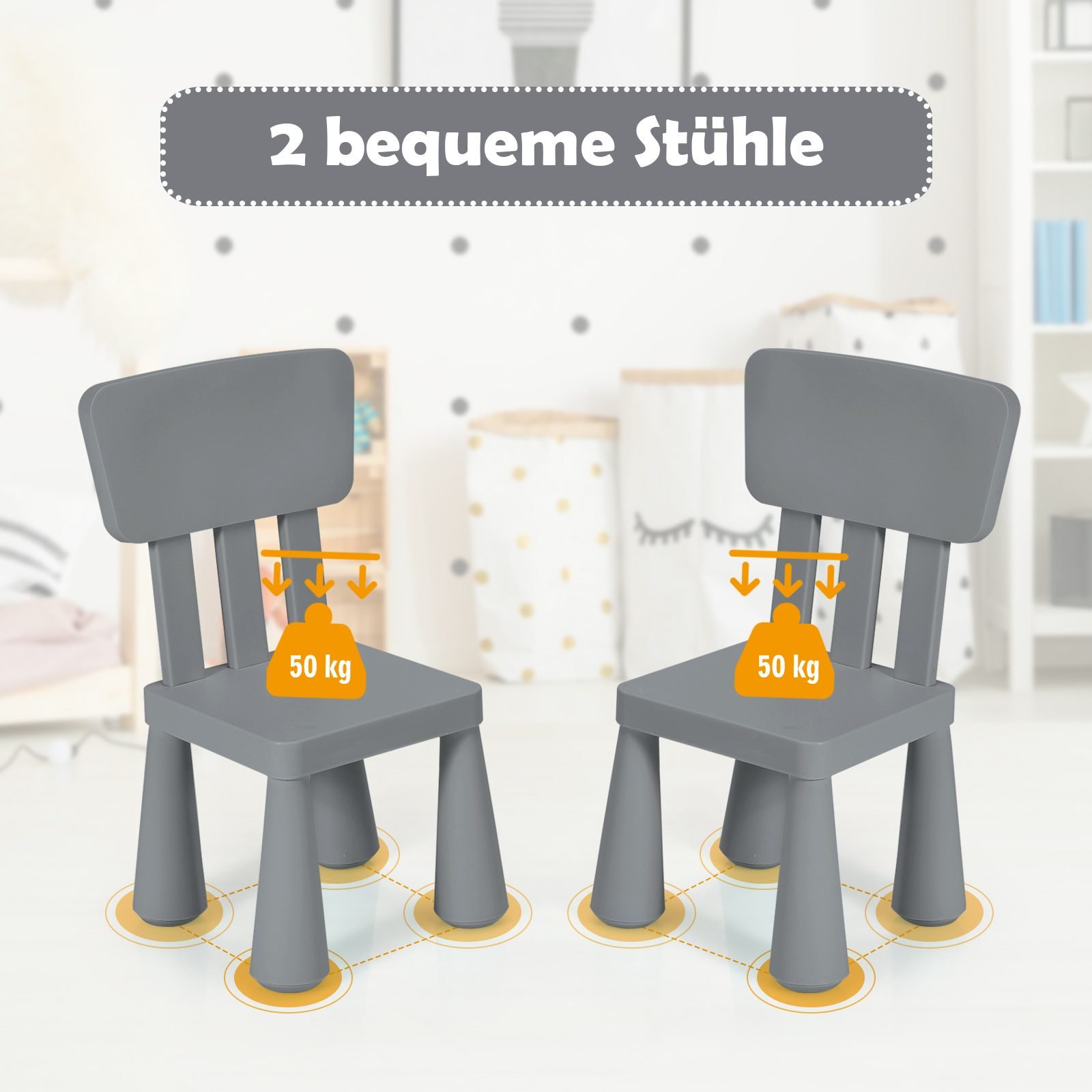 Vaikų stalas su 2 kėdėmis pilkos spalvos PP (Pilka)