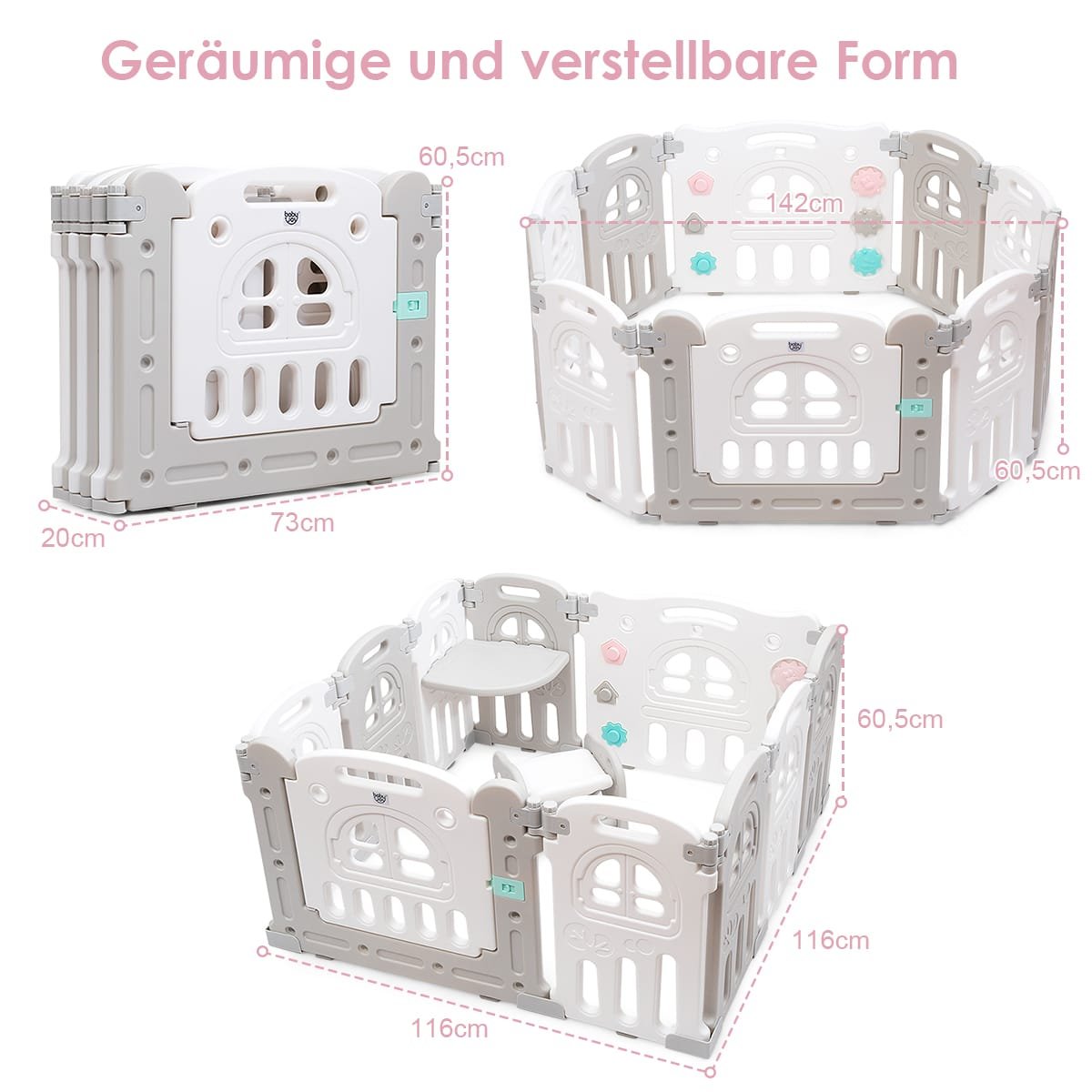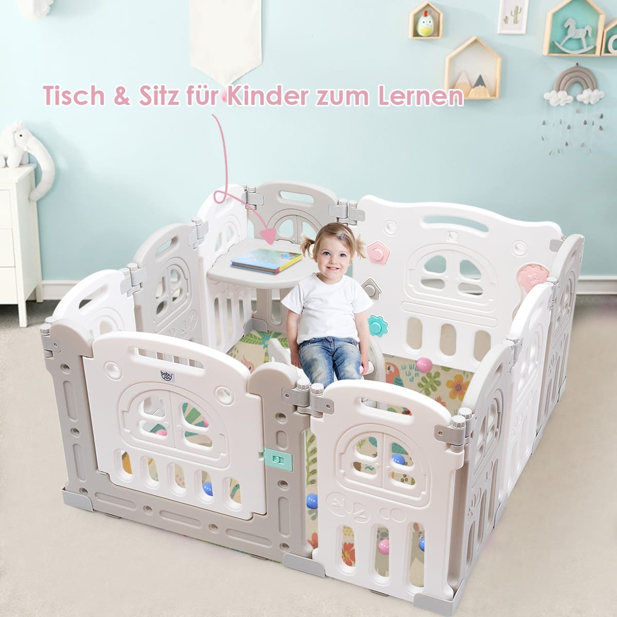 Vaikų žaidimų aptvaras su stalu ir kėde 10 panelių (Pilka)
