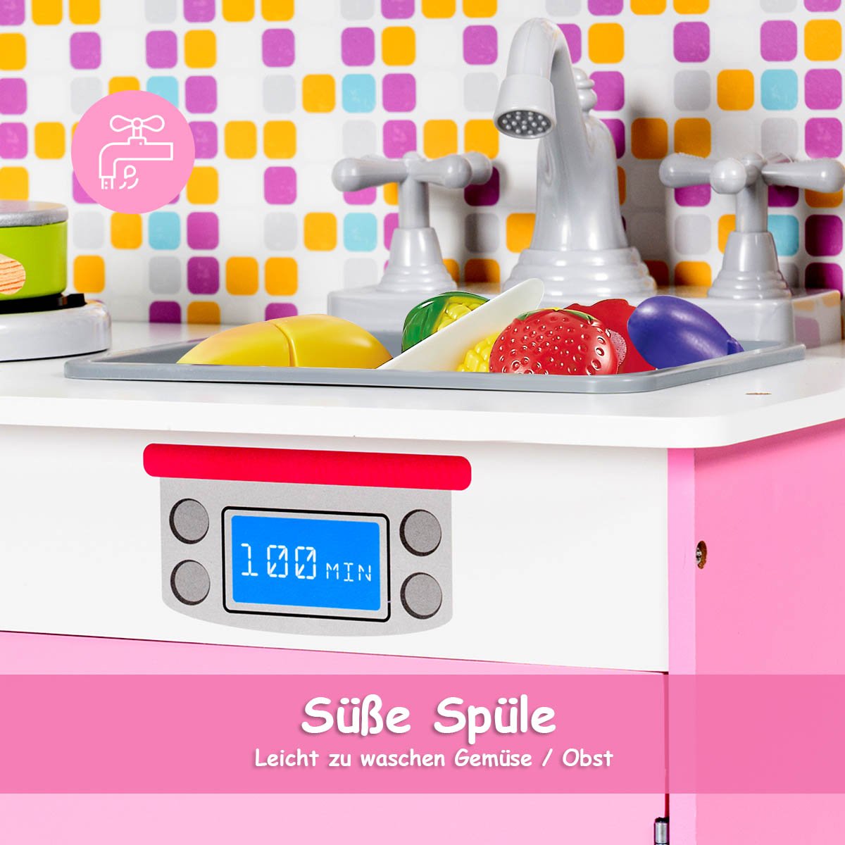 Vaikų žaidimų virtuvėlė su orkaite ir kriaukle (Rožinė)