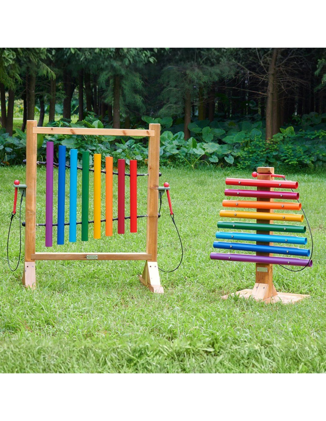 Vaivorykštinis muzikinis bokštas atveria garsų pasaulį ir puikiai tinka sodui, žaidimų aikštelei ar namų muzikos erdvei. Tvirta konstrukcija pagaminta iš natūralios pušies medienos, o aštuoni dideli aliuminio vamzdžiai nudažyti ryškiomis vaivorykštės spalvomis. Šis bokštas – puiki įžanga į muzikos pasaulį, kuriame kiekvienas smūgis lazdele išgauna gryną ir melodingą garsą. Dėl atsparumo oro sąlygoms mažieji muzikantai gali muzikuoti lauke ištisus metus, mėgaudamiesi kūryba ir laisva saviraiška.