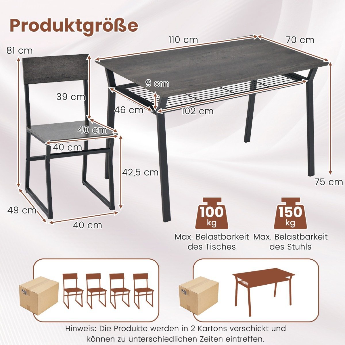 - Stalo matmenys: 110 x 70 x 75 cm (Ilgis x Plotis x Aukštis)