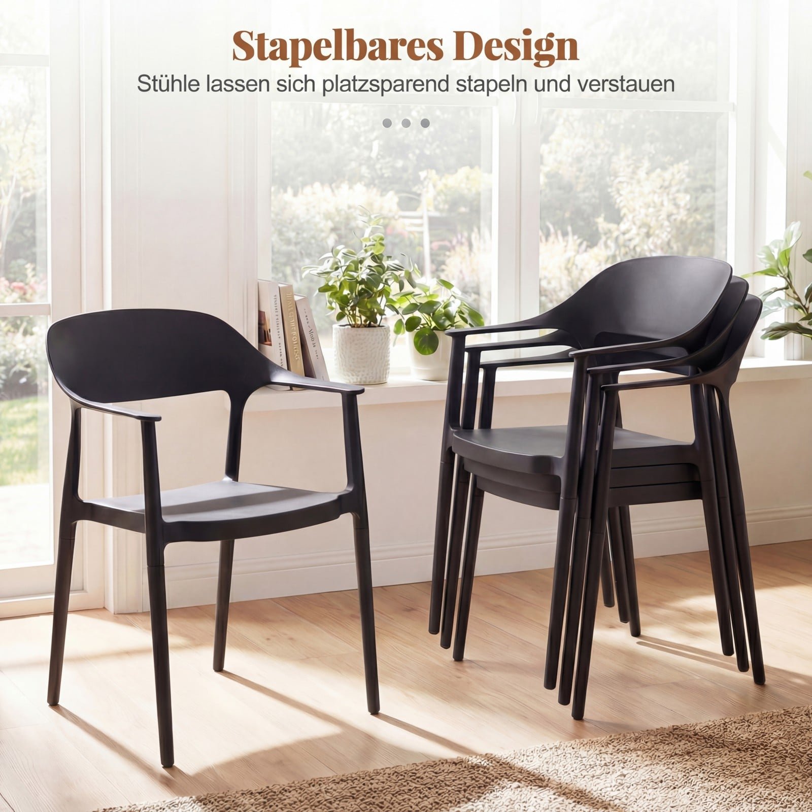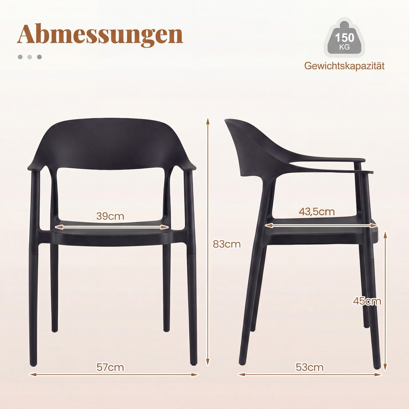 Ši valgomojo kėdė – puikus pasirinkimas įvairioms erdvėms tiek viduje, tiek lauke. Pagaminta iš oro sąlygoms atsparios PP medžiagos, ji yra ilgaamžė, lengvai prižiūrima ir paprastai transportuojama. Ergonomiškai išlenktas atlošas, patogūs porankiai ir plati sėdynė užtikrina maksimalų sėdėjimo komfortą, o galimybė kėdes sukrauti vieną ant kitos leidžia efektyviai taupyti vietą.