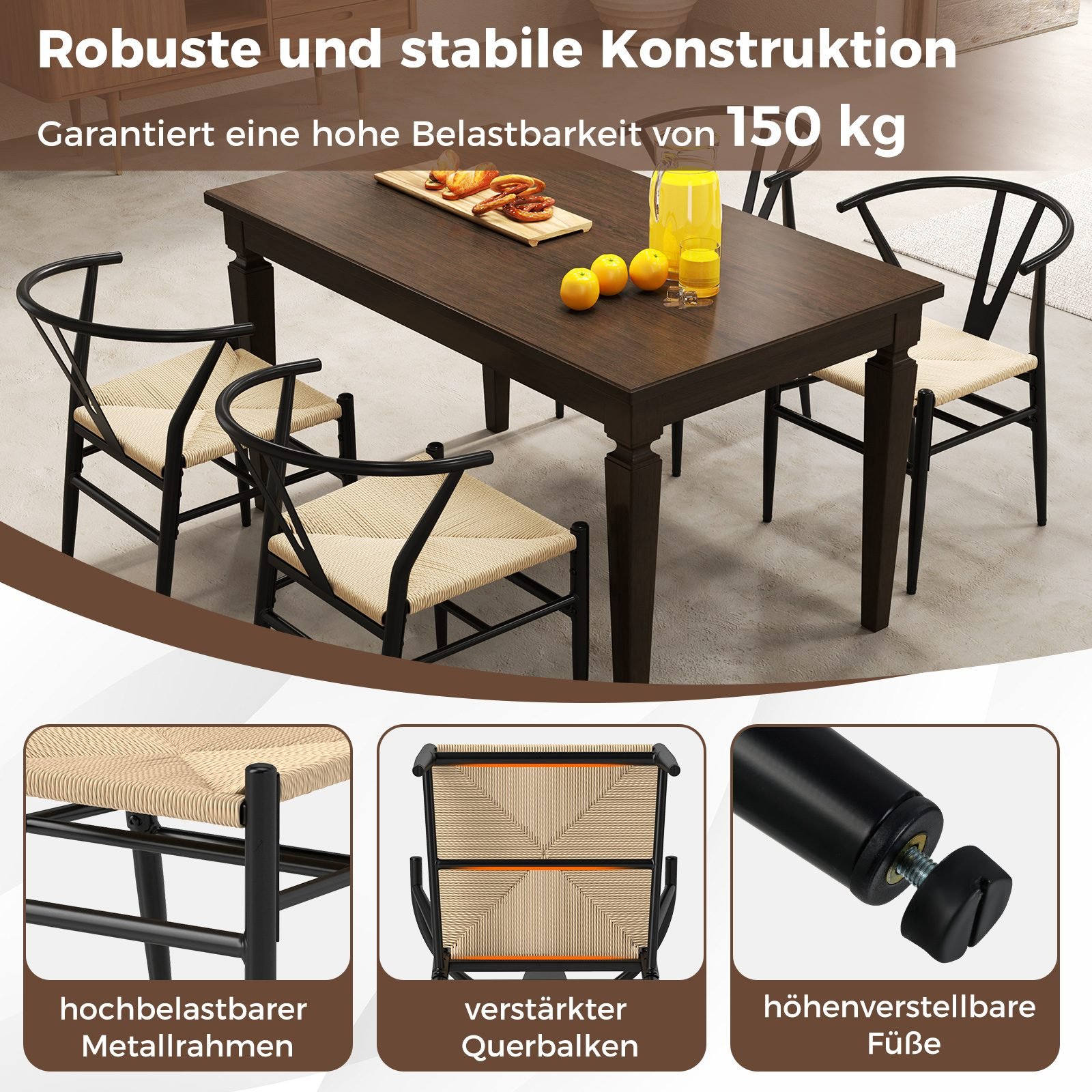 Valgomojo kėdžių komplektas su Y formos atlošu ir pintomis sėdimomis vietomis (Smėlio)