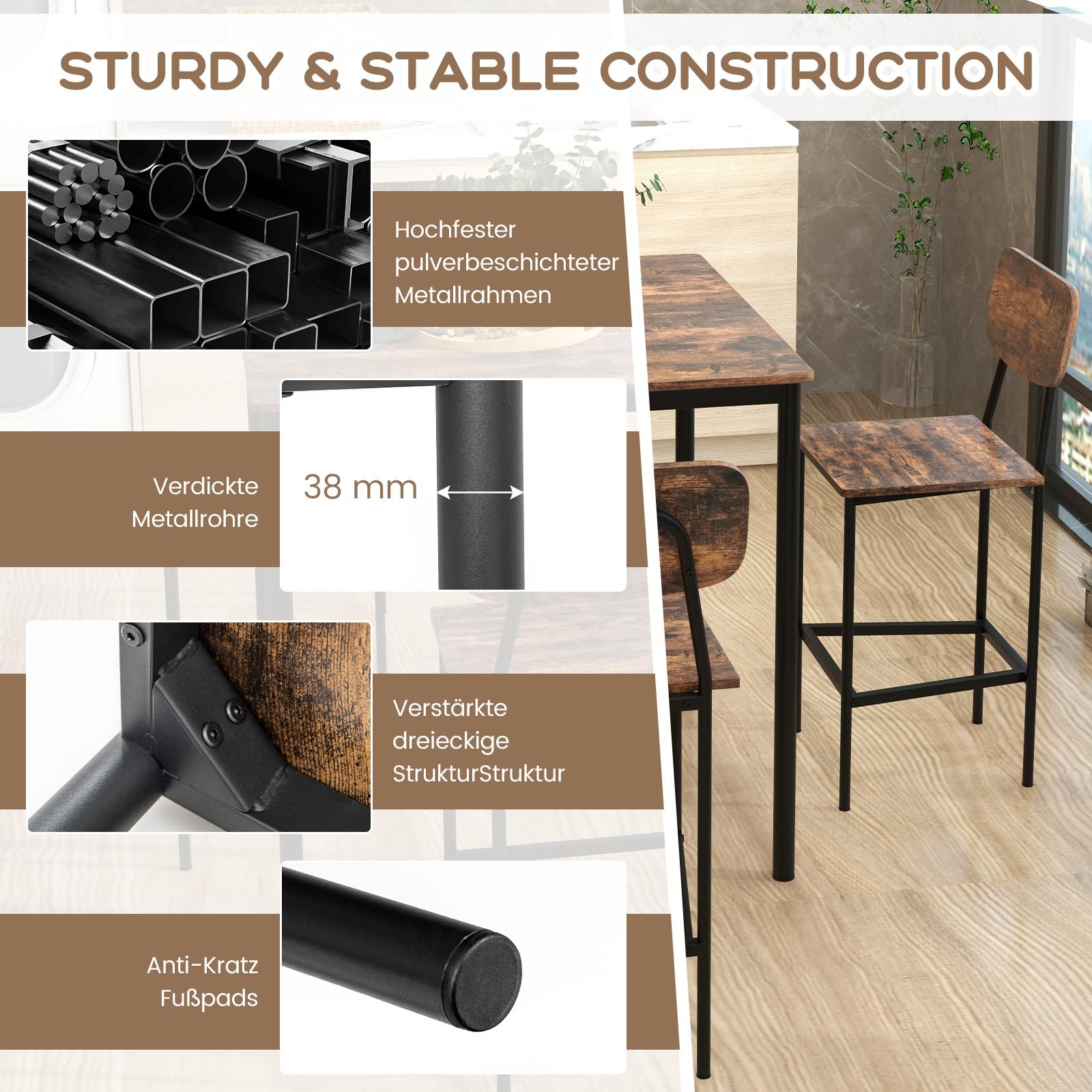 Valgomojo komplektas su 4 baro kėdėmis ir 4 stalais (Rustiška ruda)