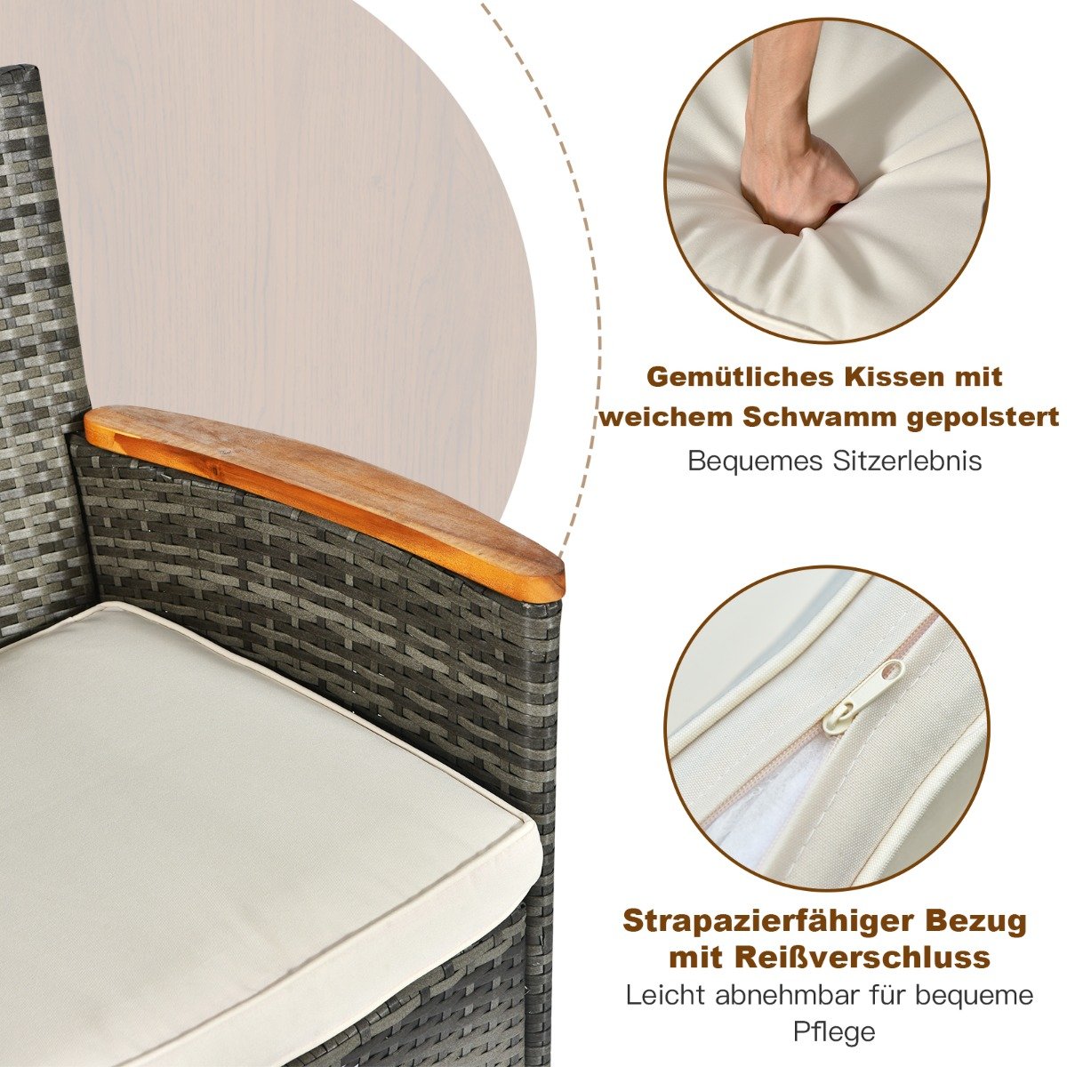 - Medžiaga: PE rotangas, plienas, akacijos mediena, poliesteris, kempinė