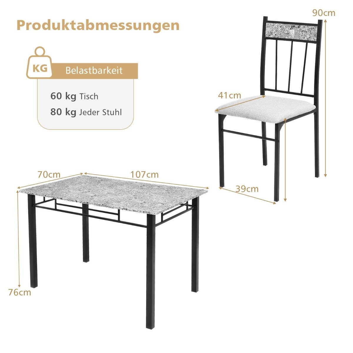 - Kėdės matmenys (I x P x A): 41 x 39 x 90 cm